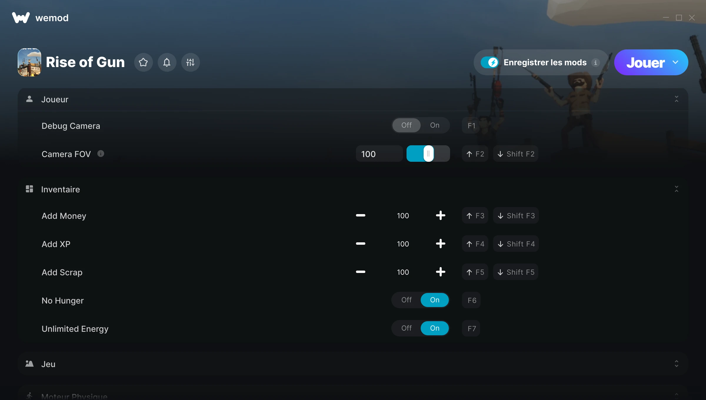 85MB Windows … ou visitez notre site sur votre PC pour télécharger l’application Obtenir Caméra de débogage, Champ de vision de la caméra & 10 autres mods for Rise of Gun with WeMod
