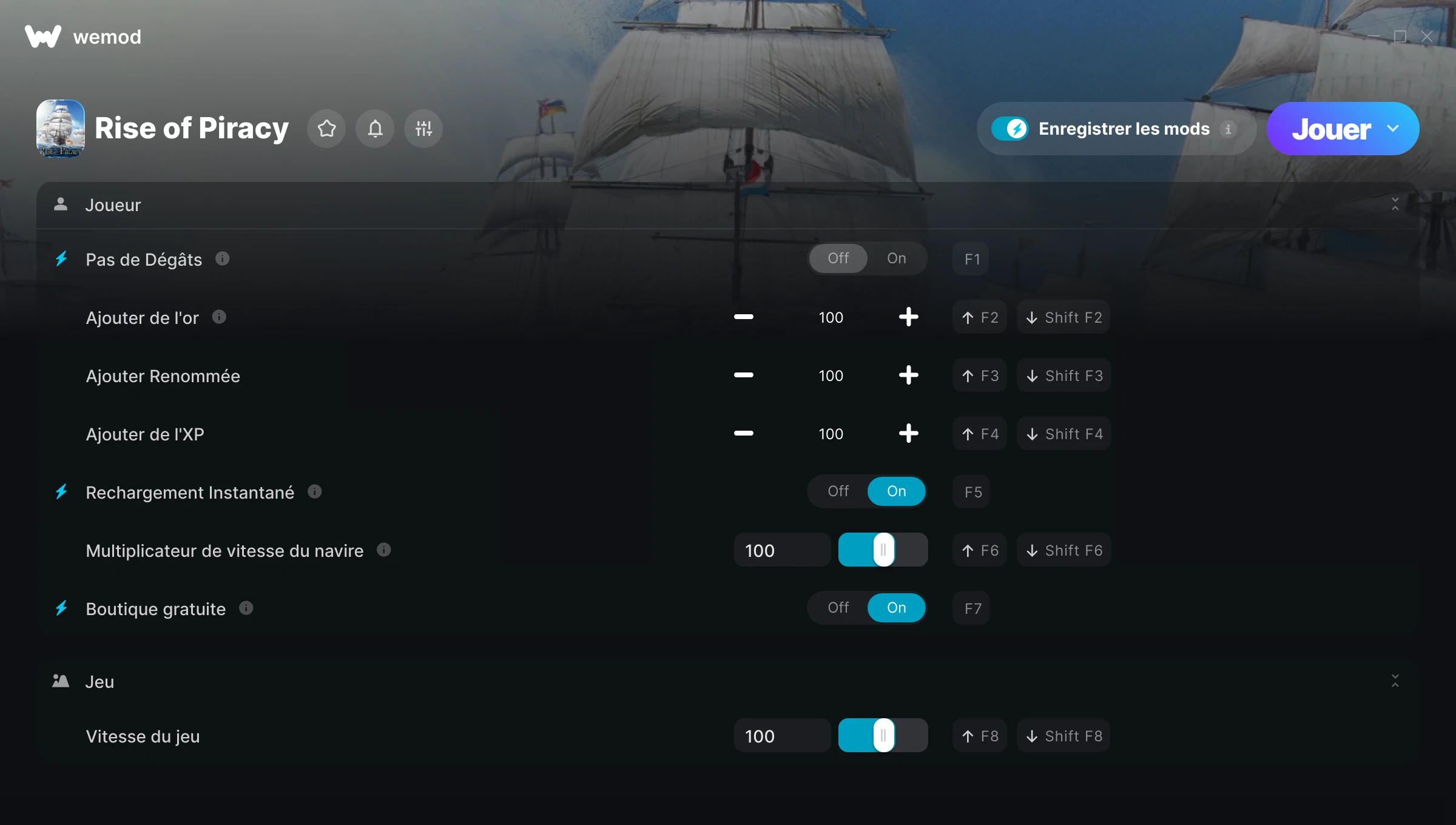 85MB Windows … ou visitez notre site sur votre PC pour télécharger l’application Obtenir Pas de Dégâts, Ajouter de l'or & 6 autres mods for Rise of Piracy with WeMod