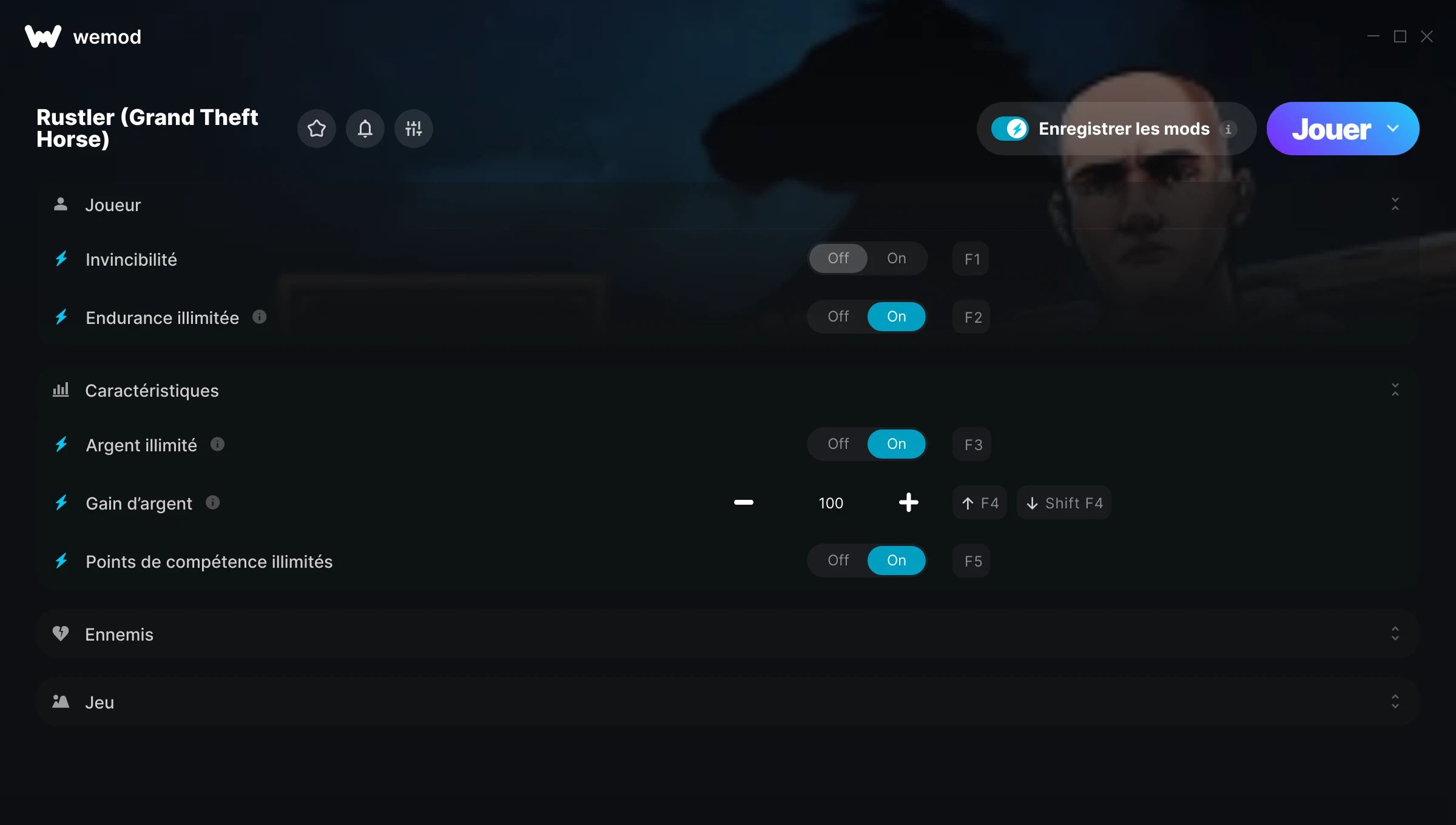Activé Désactivé Santé illimitée Endurance illimitée Activez des mods