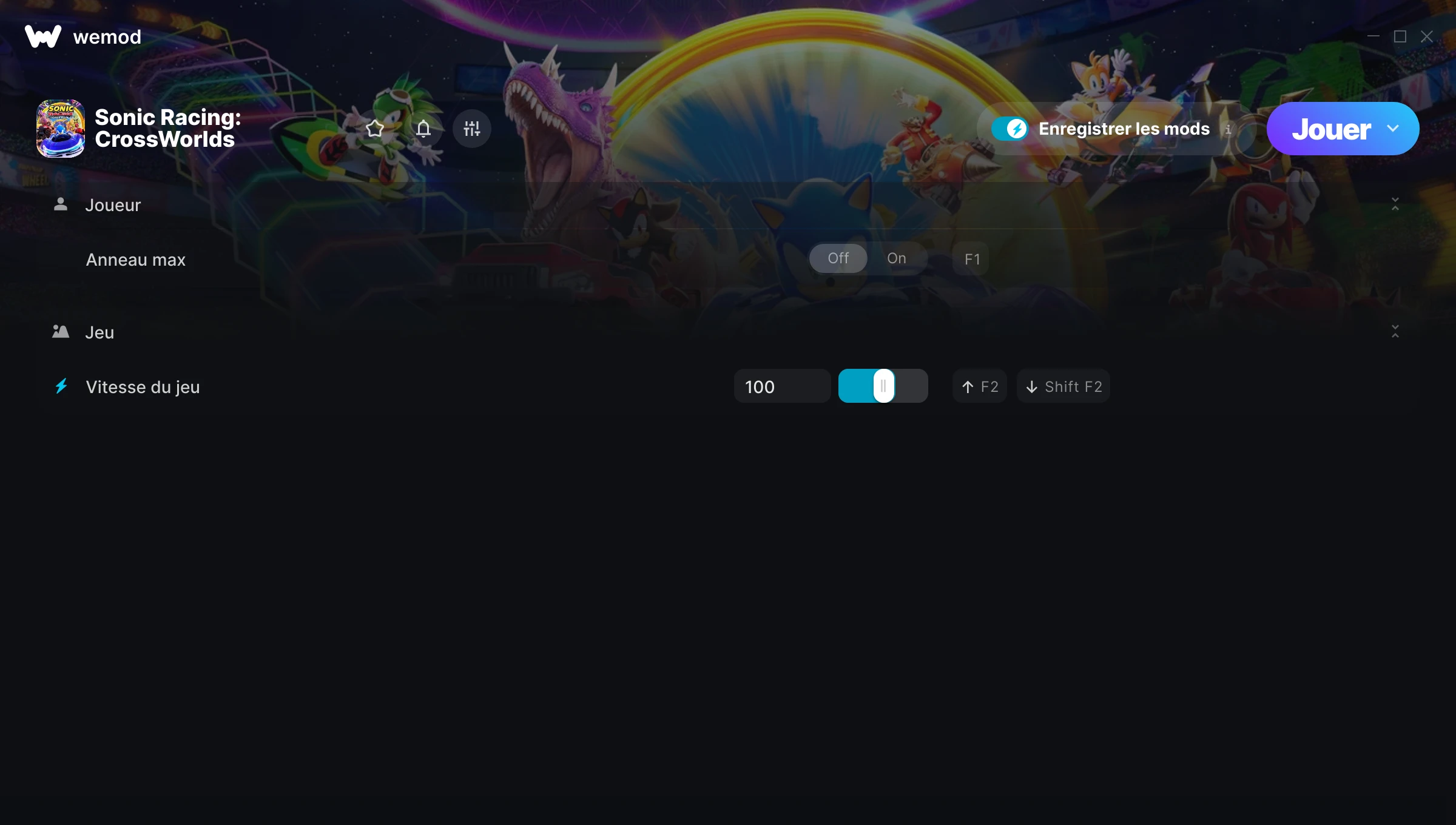 85MB Windows … ou visitez notre site sur votre PC pour télécharger l’application Obtenir Anneau max, Vitesse du jeu for Sonic Racing: CrossWorlds with WeMod