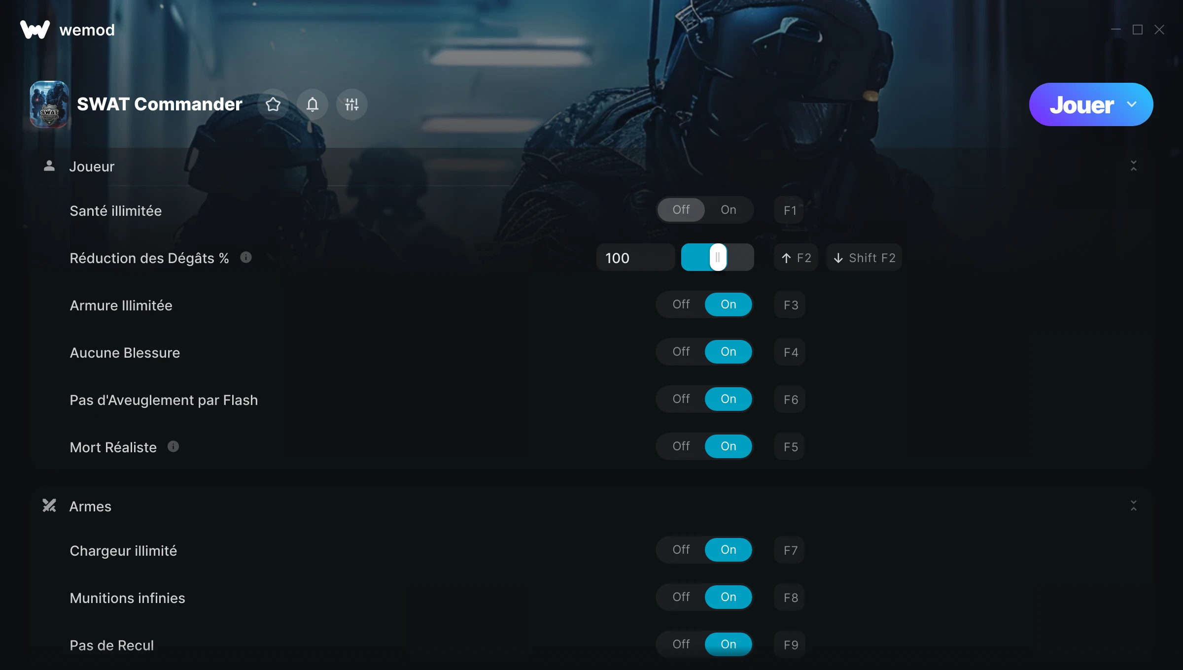 85MB Windows … ou visitez notre site sur votre PC pour télécharger l’application Obtenir Santé illimitée, Réduction des Dégâts % & 26 autres mods for SWAT Commander with WeMod