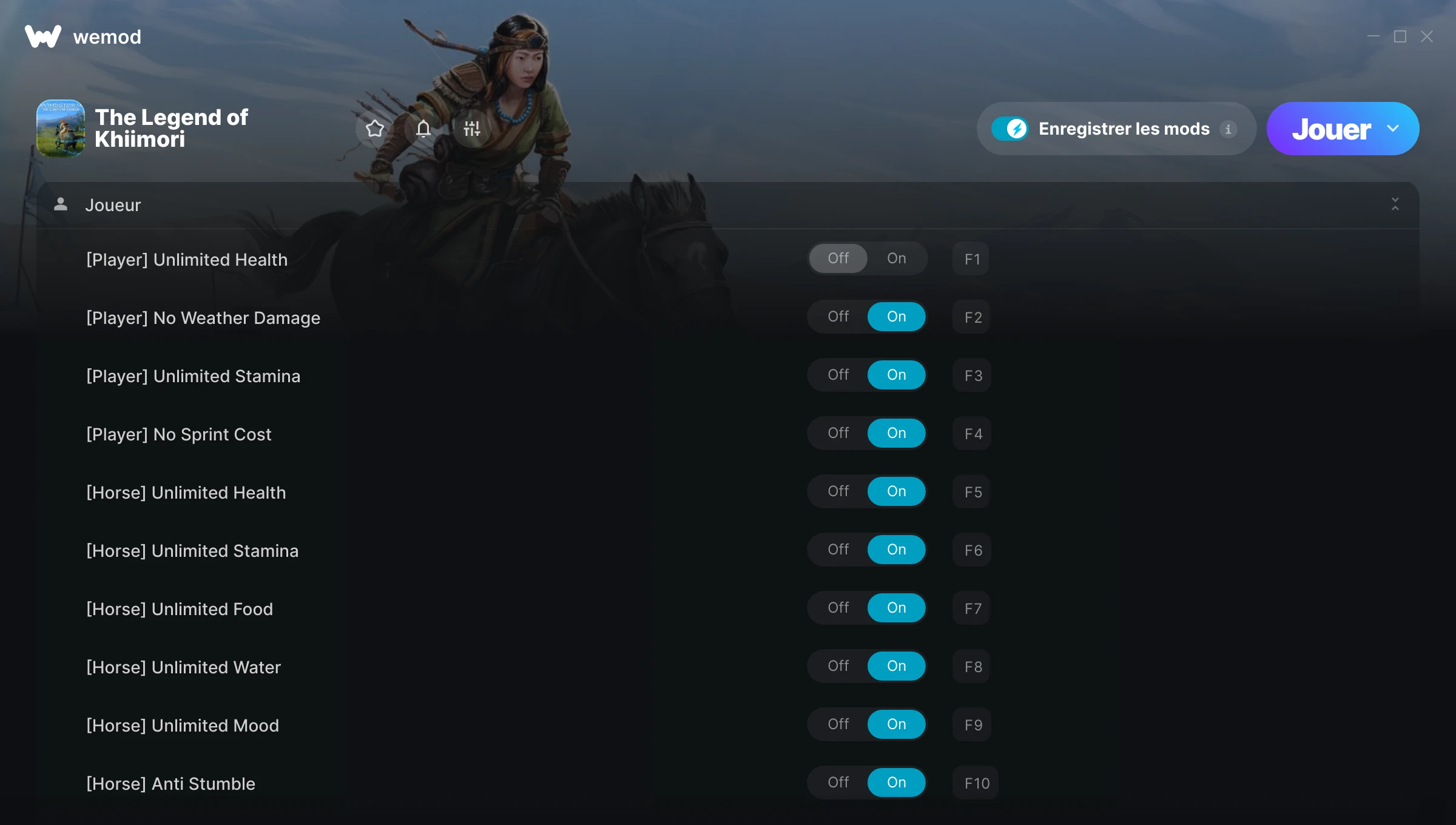 Activé Désactivé Santé illimitée Endurance illimitée Activez des mods