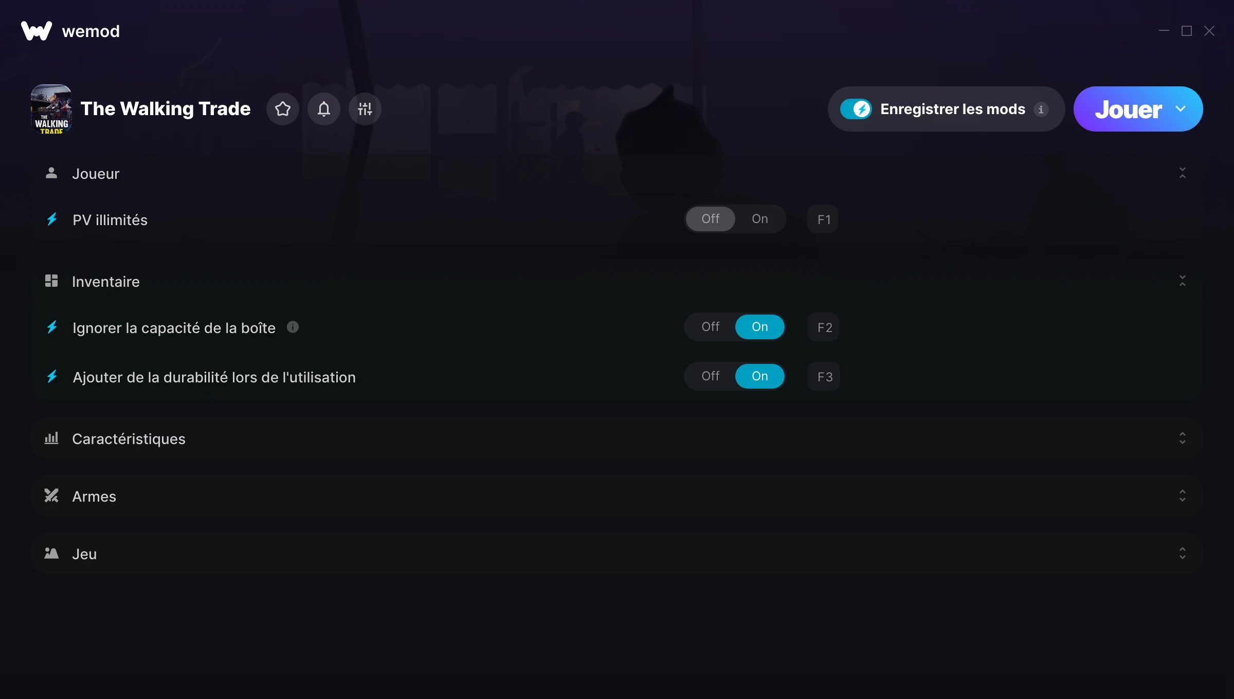 85MB Windows … ou visitez notre site sur votre PC pour télécharger l’application Obtenir PV illimités, Ignorer la capacité de la boîte & 11 autres mods for The Walking Trade with WeMod