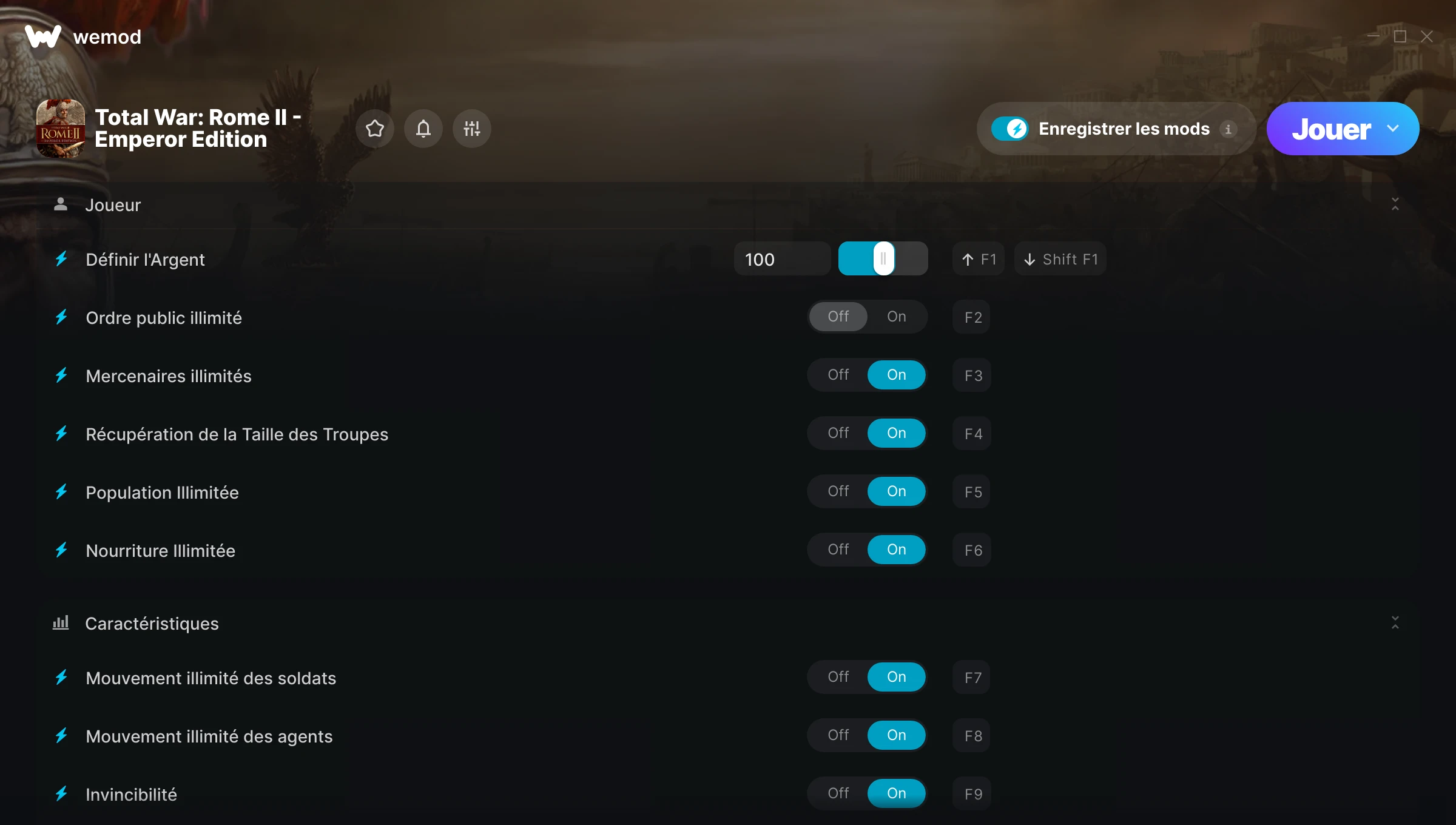 amazing thank you so much for this mod. I bought total war Rome 2 thinking I could use console commands i was wrong. so thank you much Wemod