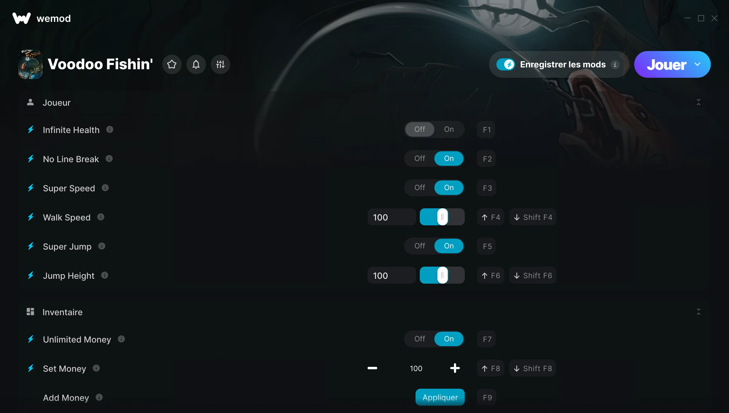 85MB Windows … ou visitez notre site sur votre PC pour télécharger l’application Obtenir Santé infinie, Sans Rupture de Ligne & 15 autres mods for Voodoo Fishin' with WeMod
