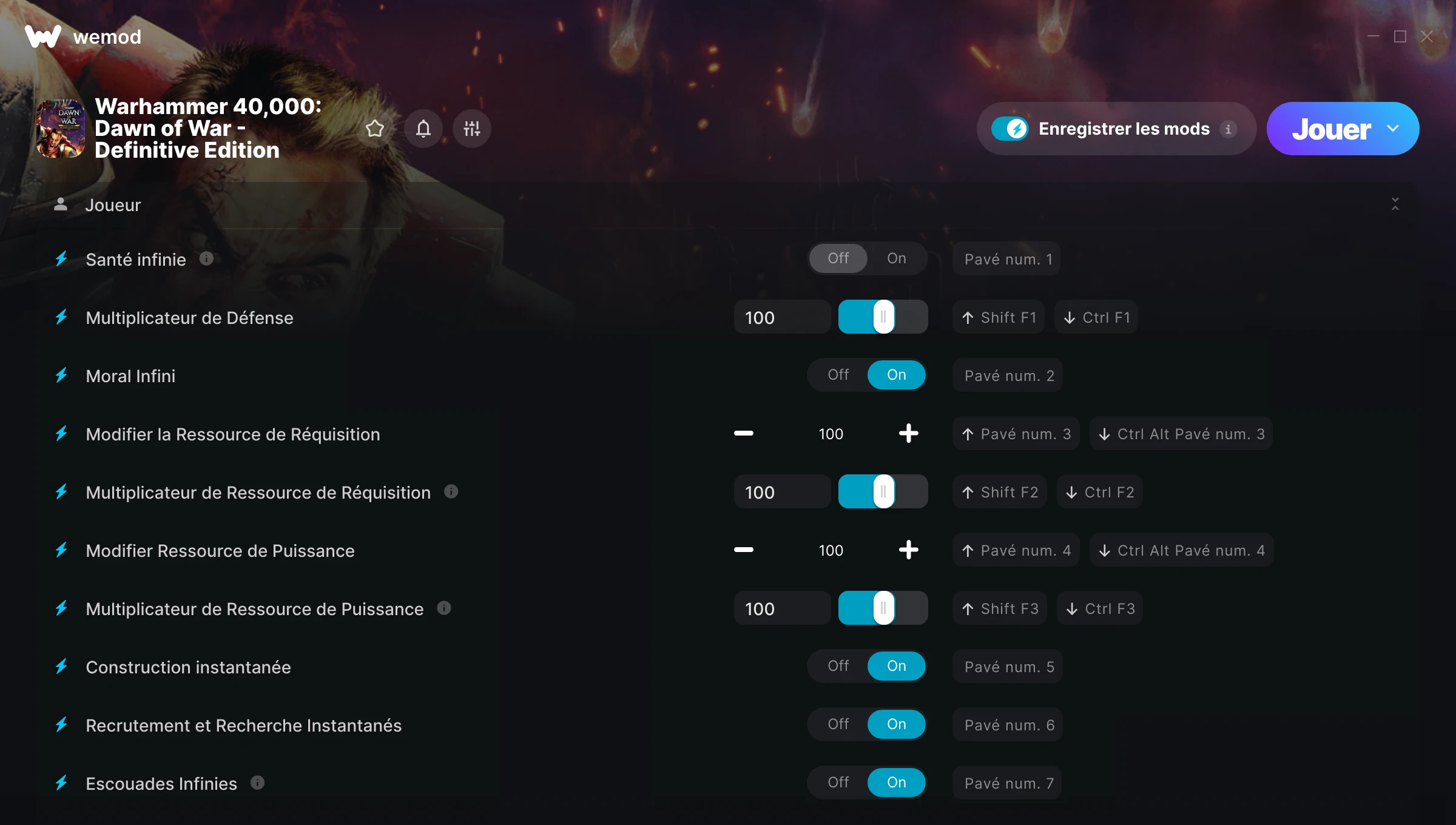85MB Windows … ou visitez notre site sur votre PC pour télécharger l’application Obtenir Santé infinie, Multiplicateur de Défense & 18 autres mods for Warhammer 40,000: Dawn of War - Definitive Edition with WeMod