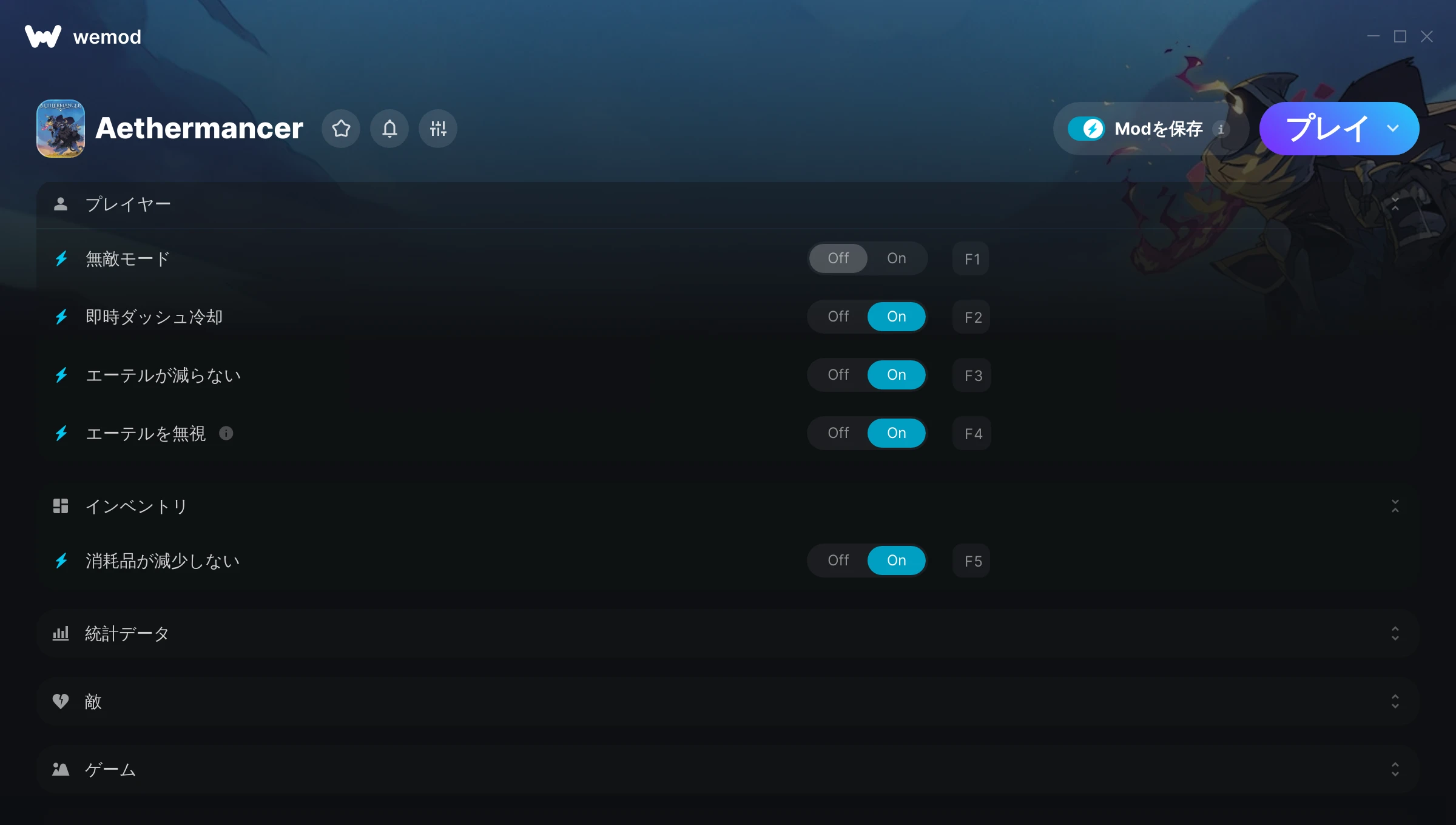 85MB Windows ...またはPCでWeModにアクセスしてアプリをダウンロード 無敵モードを入手, 即時ダッシュ冷却 & その他19件のMod for Aethermancer with WeMod