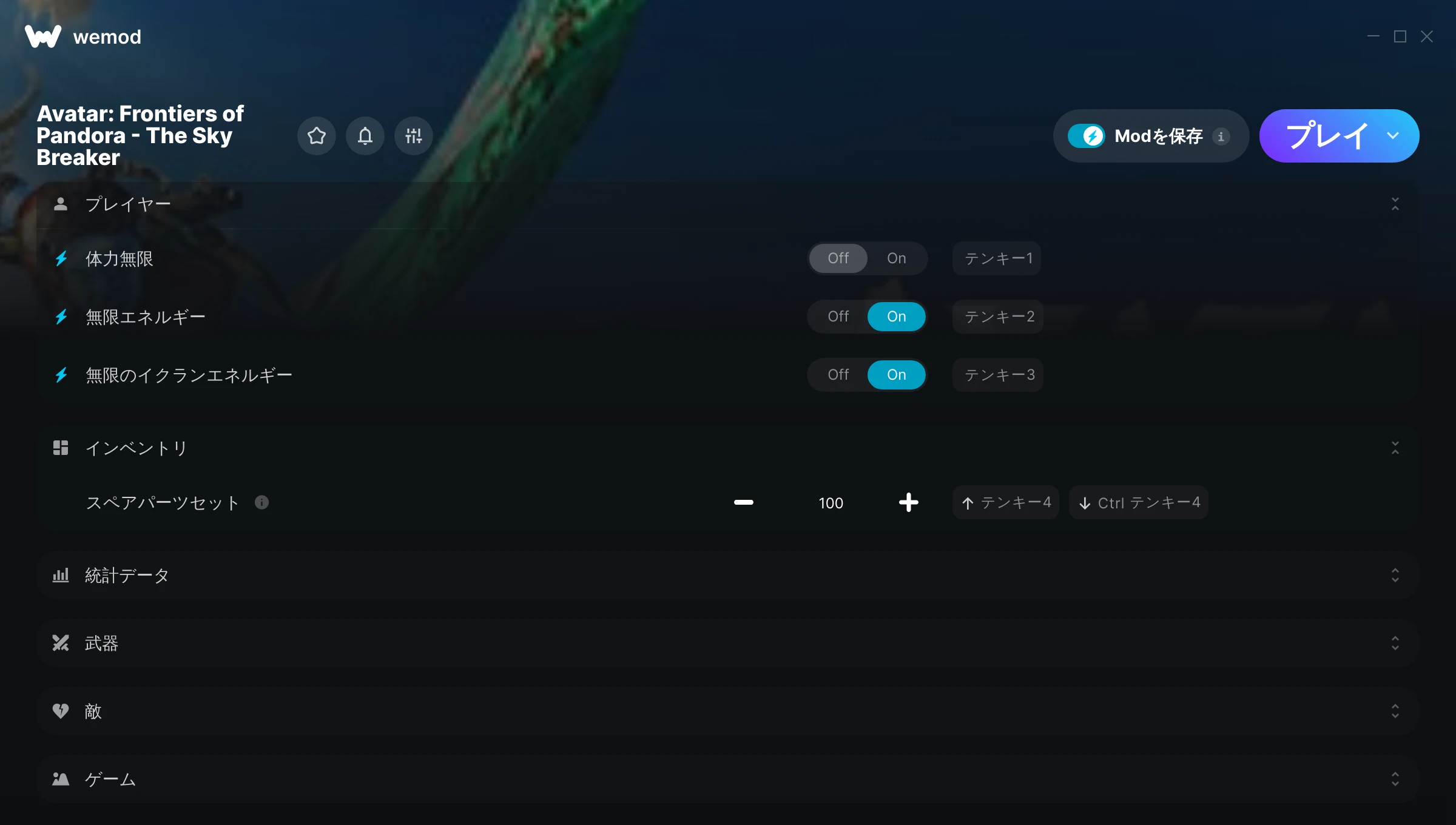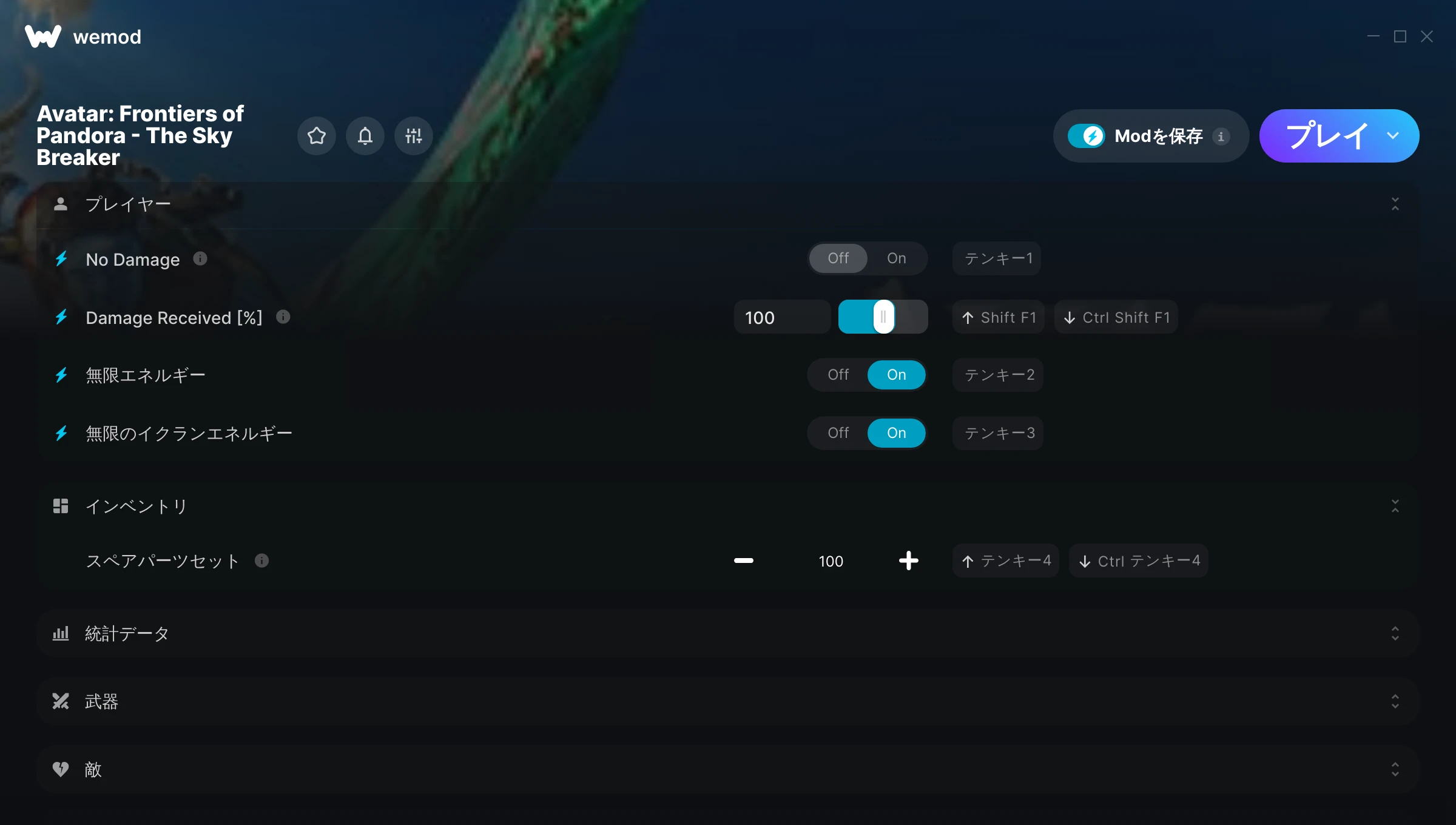 Avatar: Frontiers of Pandora - The Sky Breakerでチートを使うにはどうすればよいですか?WeModはすべてのゲームをPC上に安全に表現します。リストからゲームを開き、プレイを開始するだけです。ゲームが読み込まれ、ユーザーがゲーム内に入ると、さまざまなチートを有効化できるようになります!これは私のゲームのバージョンで動作しますか?WeModは高度な技術を使用して、実行中のゲームのバージョンを検知し、対応しているかどうかをユーザーに通知します。通知がなくても試してみることができますが、その場合はアップデートをリクエストしてみてください!