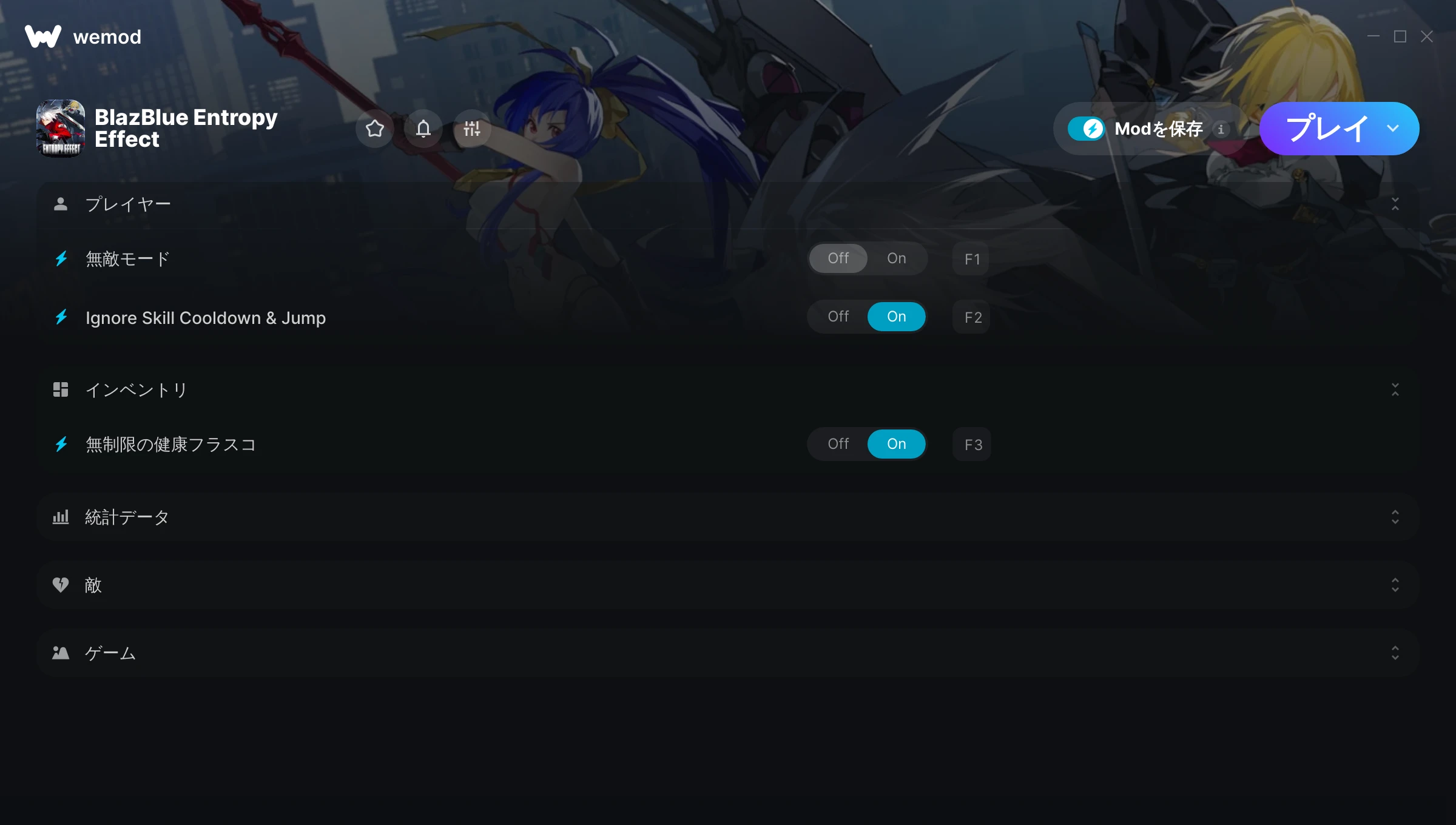 85MB Windows ...またはPCでWeModにアクセスしてアプリをダウンロード 無敵モードを入手, スキルクールダウン無視&ジャンプ & その他5件のMod for BlazBlue Entropy Effect with WeMod