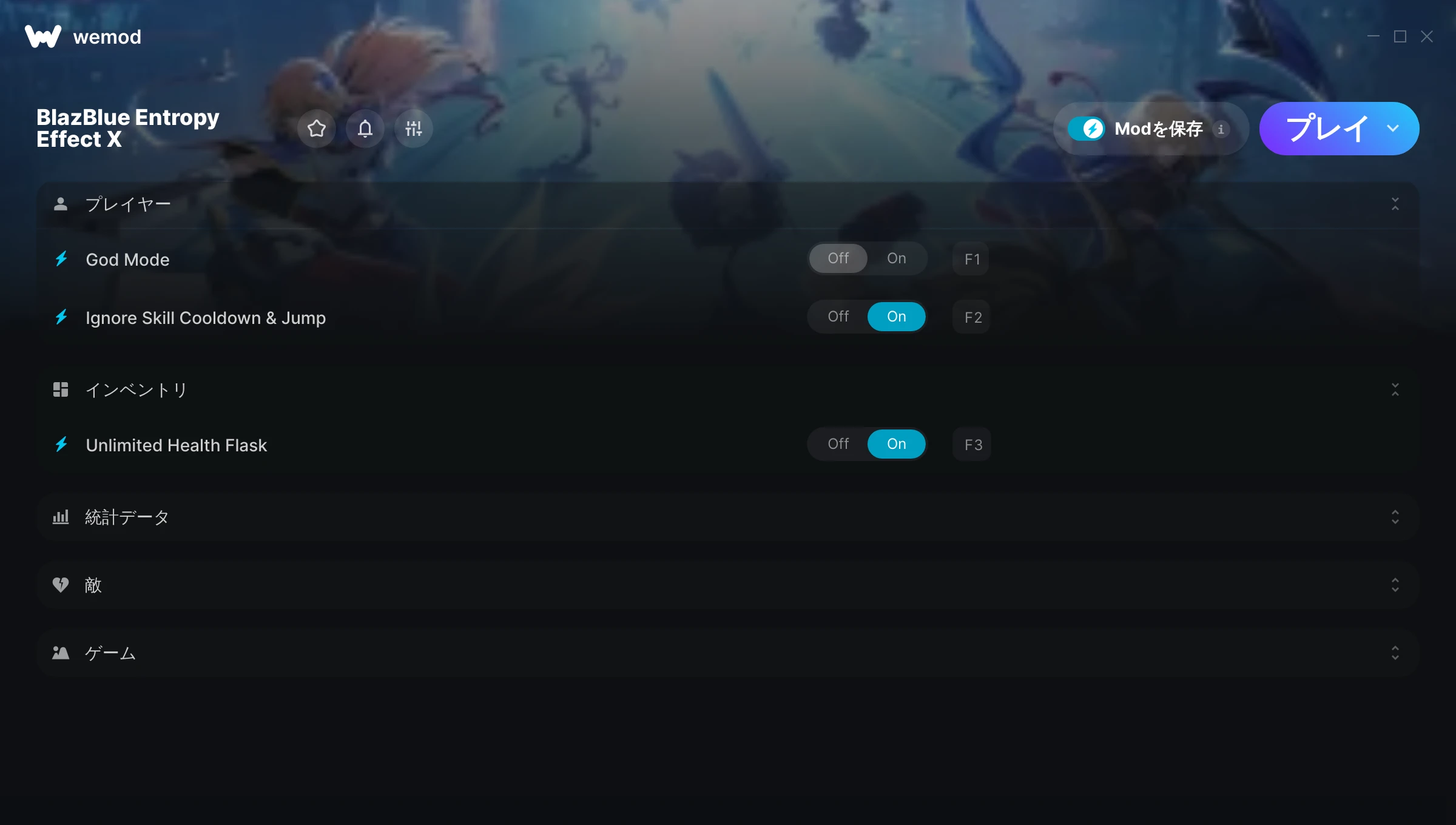 85MB Windows ...またはPCでWeModにアクセスしてアプリをダウンロード 無敵モードを入手, スキルクールダウン無視&ジャンプ & その他5件のMod for BlazBlue Entropy Effect X with WeMod