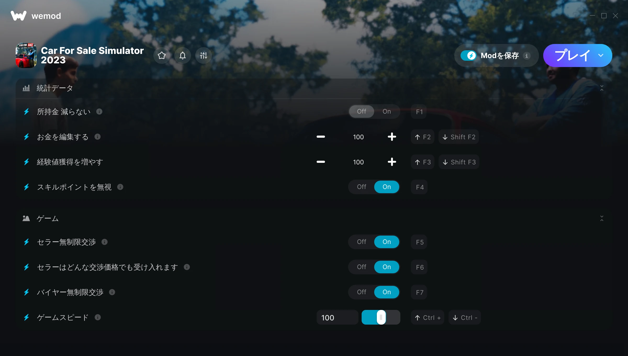 85MB Windows ...またはPCでWeModにアクセスしてアプリをダウンロード 所持金 減らないを入手, お金を編集する & その他6件のMod for Car For Sale Simulator 2023 with WeMod