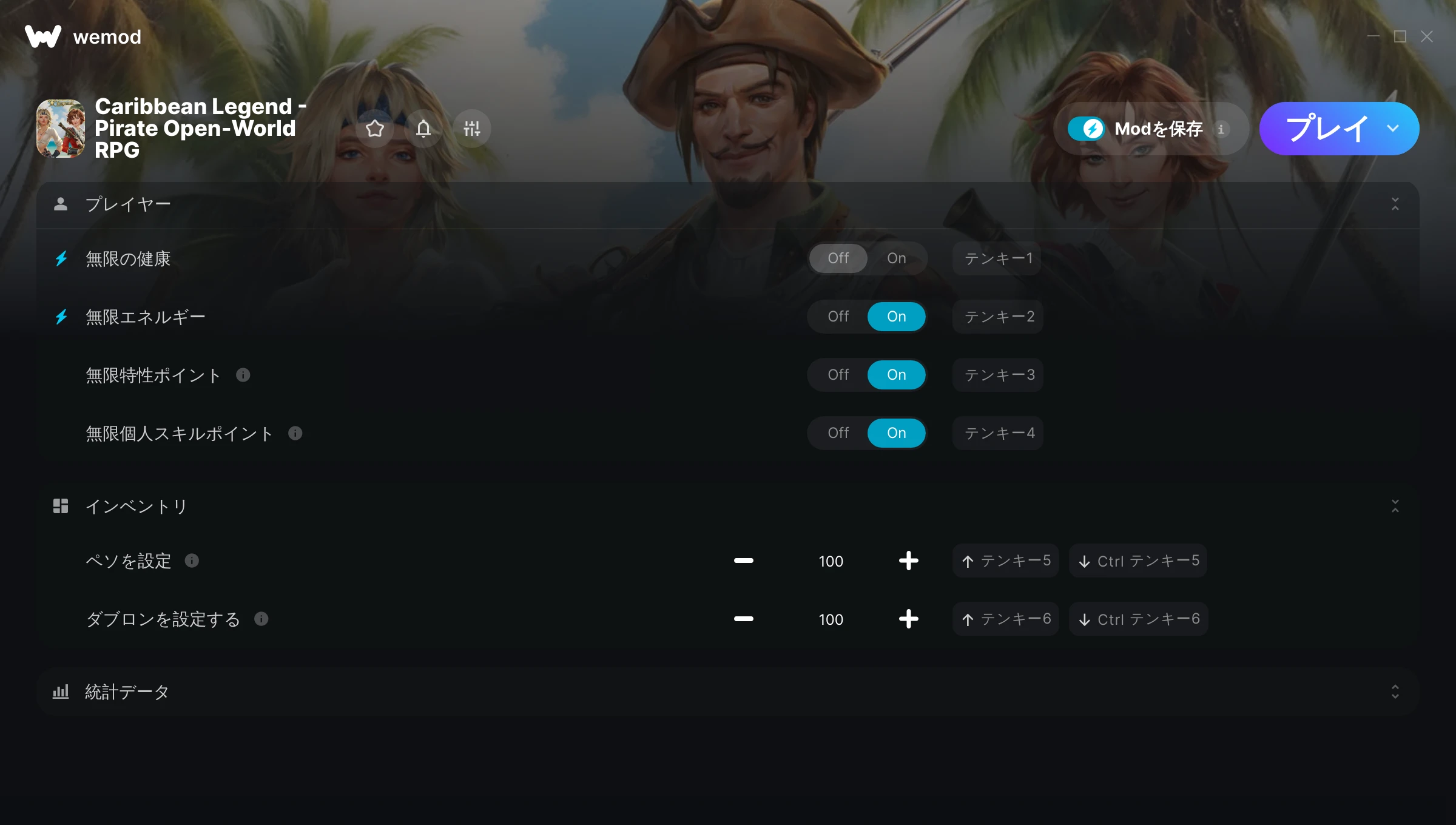 85MB Windows ...またはPCでWeModにアクセスしてアプリをダウンロード 無限の健康を入手, 無限エネルギー & その他6件のMod for Caribbean Legend - Pirate Open-World RPG with WeMod