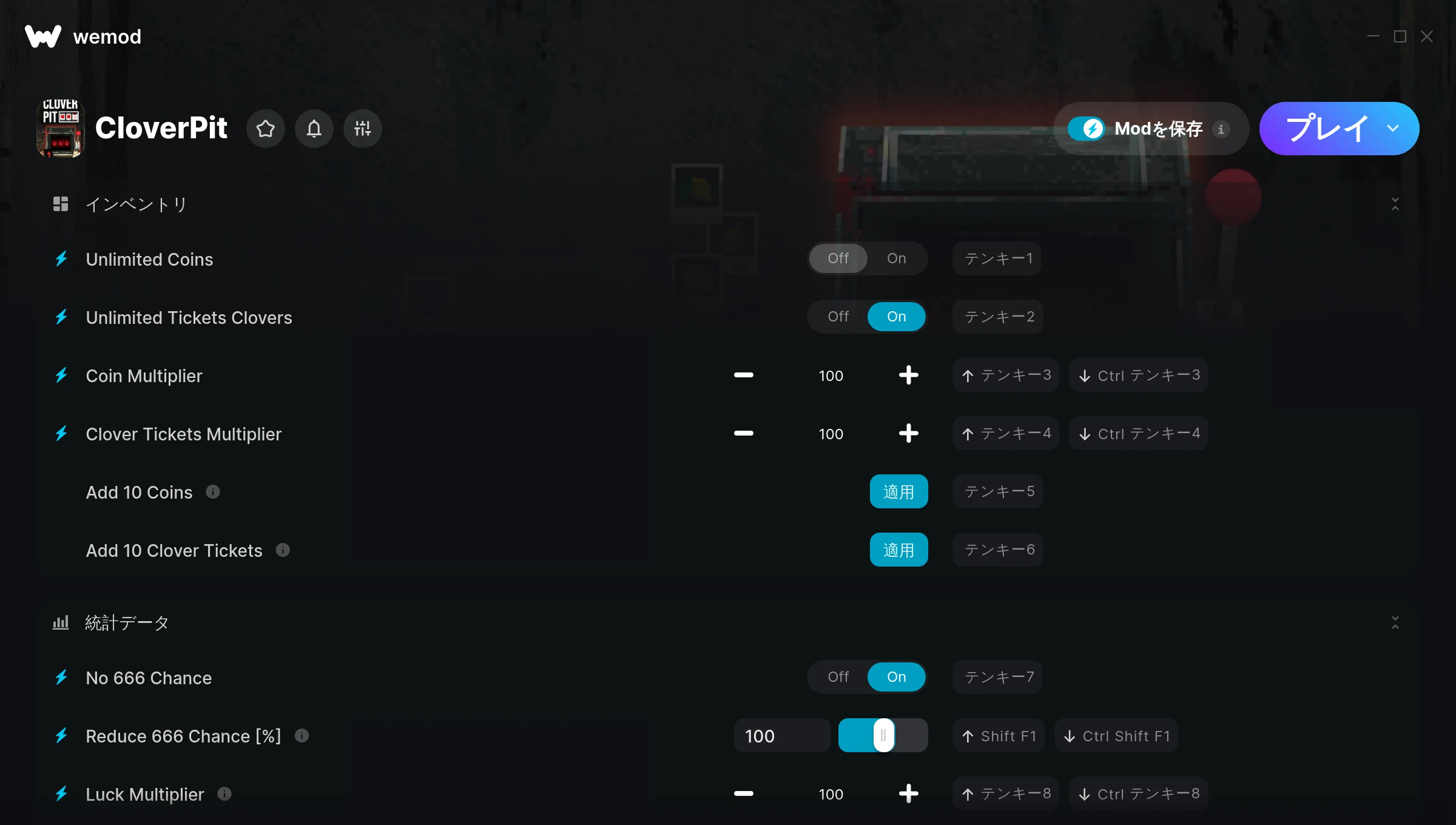 85MB Windows ...またはPCでWeModにアクセスしてアプリをダウンロード 無制限のコインを入手, 無限チケット クローバー & その他13件のMod for CloverPit with WeMod