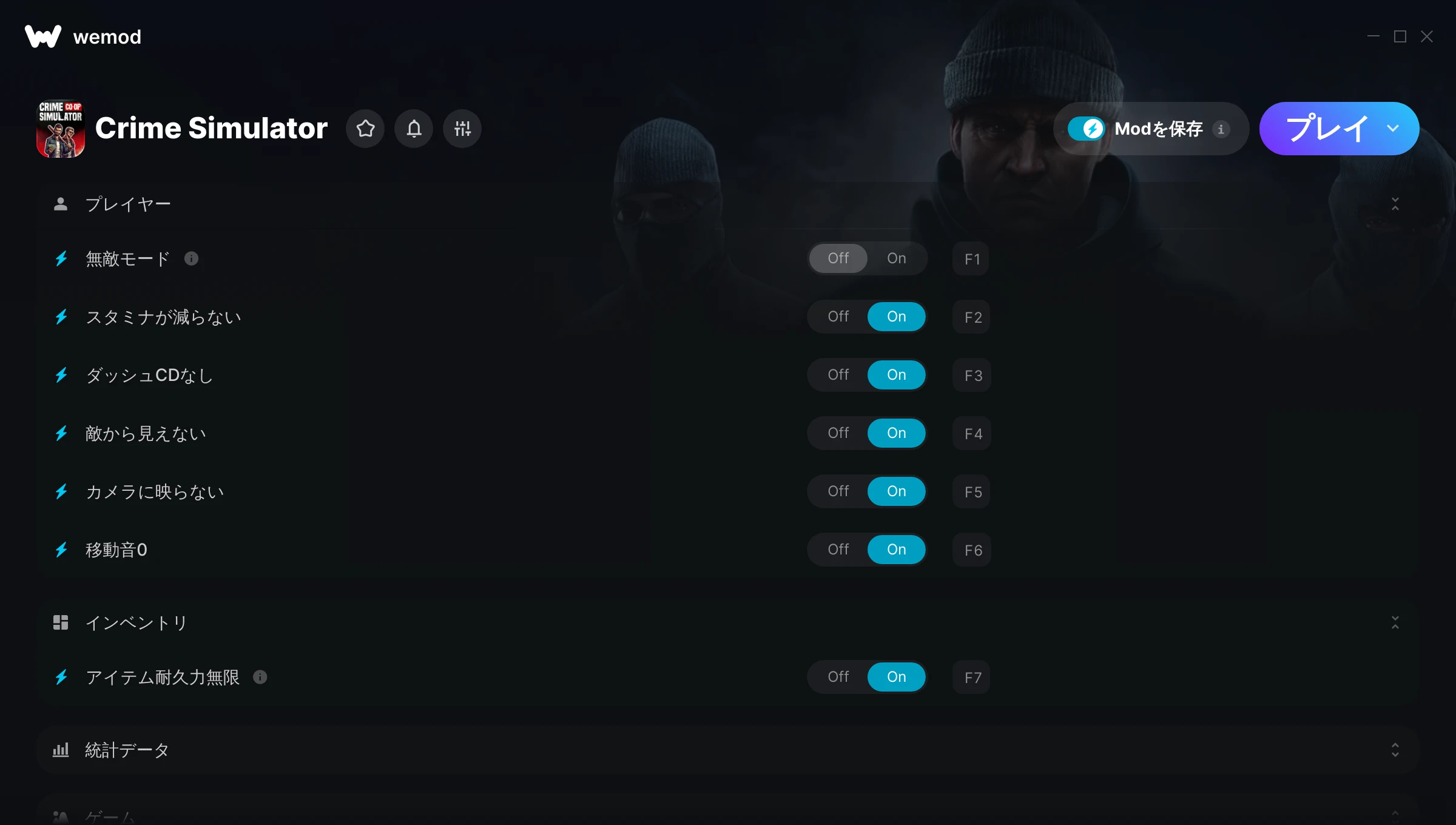 85MB Windows ...またはPCでWeModにアクセスしてアプリをダウンロード 無敵モードを入手, スタミナが減らない & その他11件のMod for Crime Simulator with WeMod