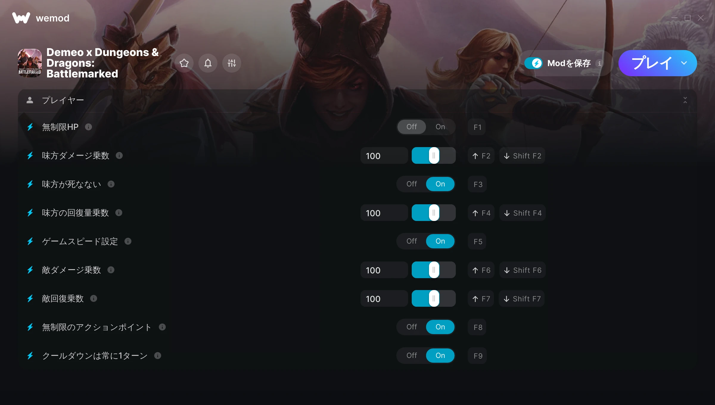 85MB Windows ...またはPCでWeModにアクセスしてアプリをダウンロード 無制限HPを入手, 味方ダメージ乗数 & その他7件のMod for Demeo x Dungeons & Dragons: Battlemarked with WeMod