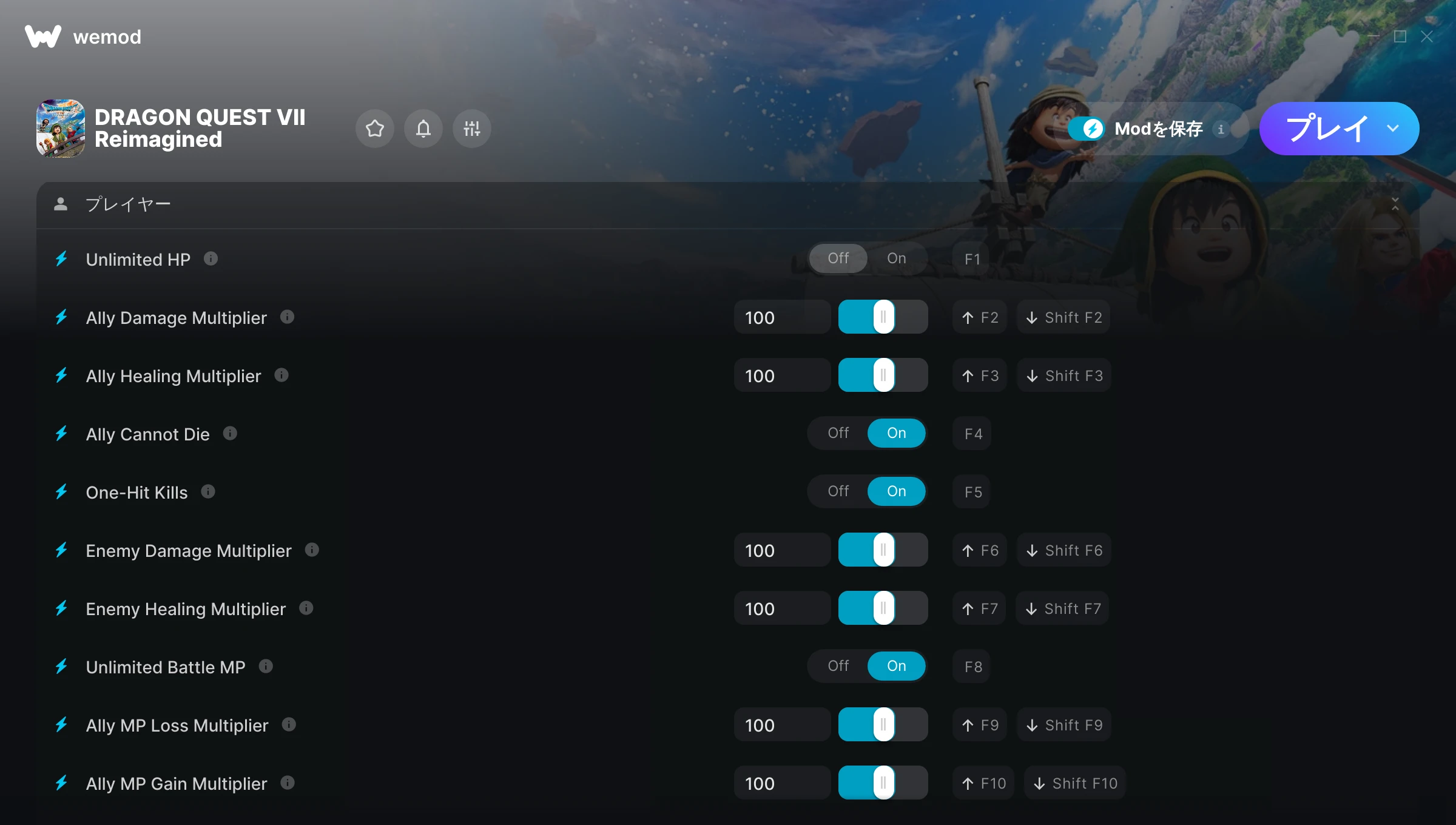 DRAGON QUEST VII Reimaginedでチートを使うにはどうすればよいですか?WeModはすべてのゲームをPC上に安全に表現します。リストからゲームを開き、プレイを開始するだけです。ゲームが読み込まれ、ユーザーがゲーム内に入ると、さまざまなチートを有効化できるようになります!これは私のゲームのバージョンで動作しますか?WeModは高度な技術を使用して、実行中のゲームのバージョンを検知し、対応しているかどうかをユーザーに通知します。通知がなくても試してみることができますが、その場合はアップデートをリクエストしてみてください!