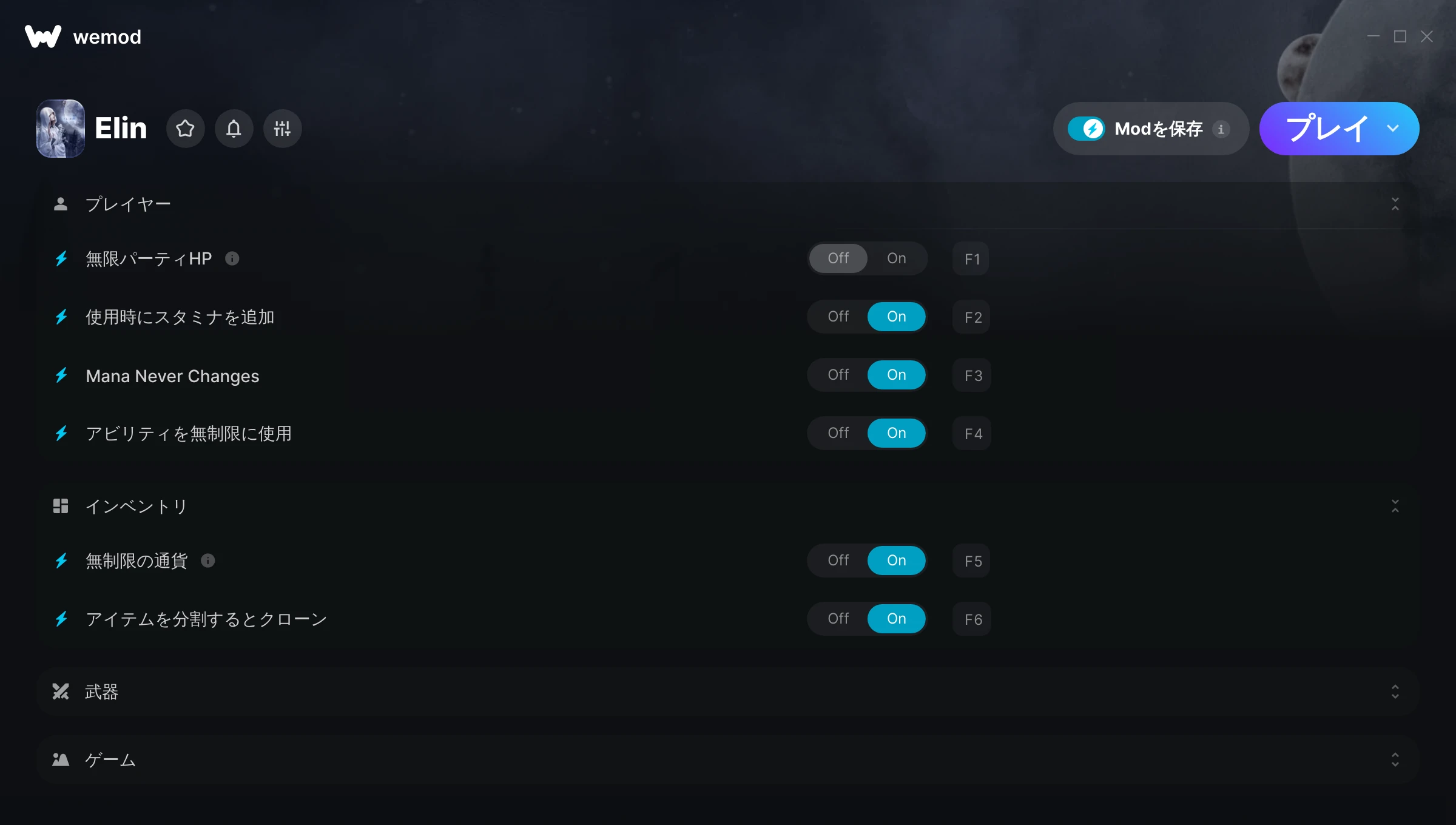 85MB Windows ...またはPCでWeModにアクセスしてアプリをダウンロード 無限パーティHPを入手, 使用時にスタミナを追加 & その他7件のMod for Elin with WeMod