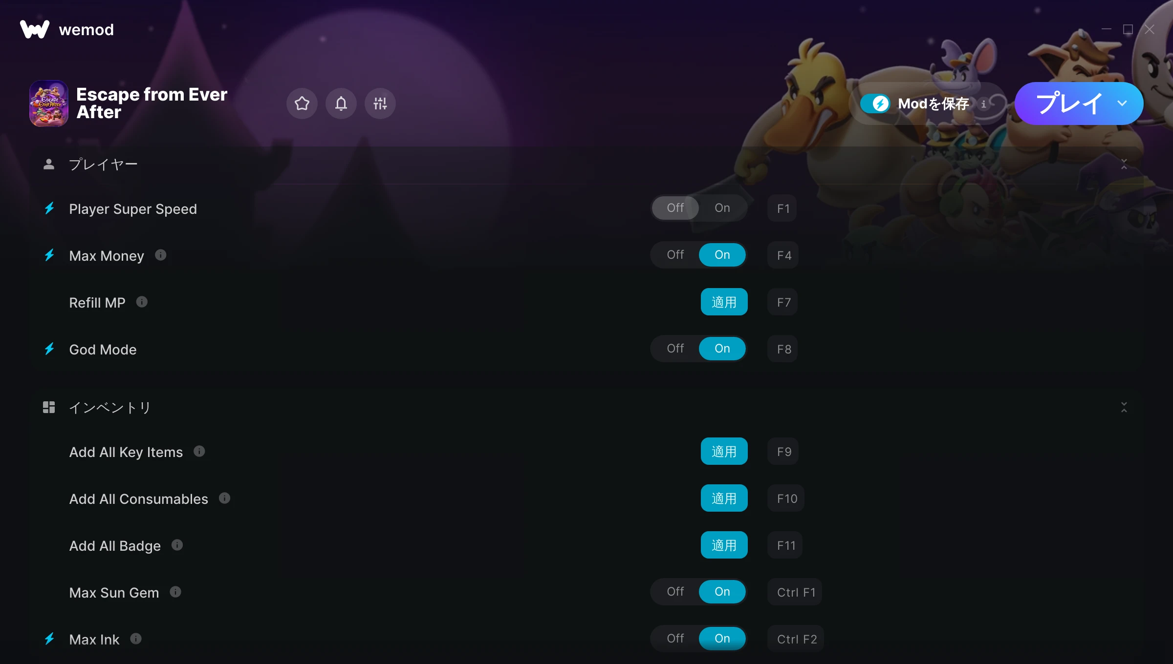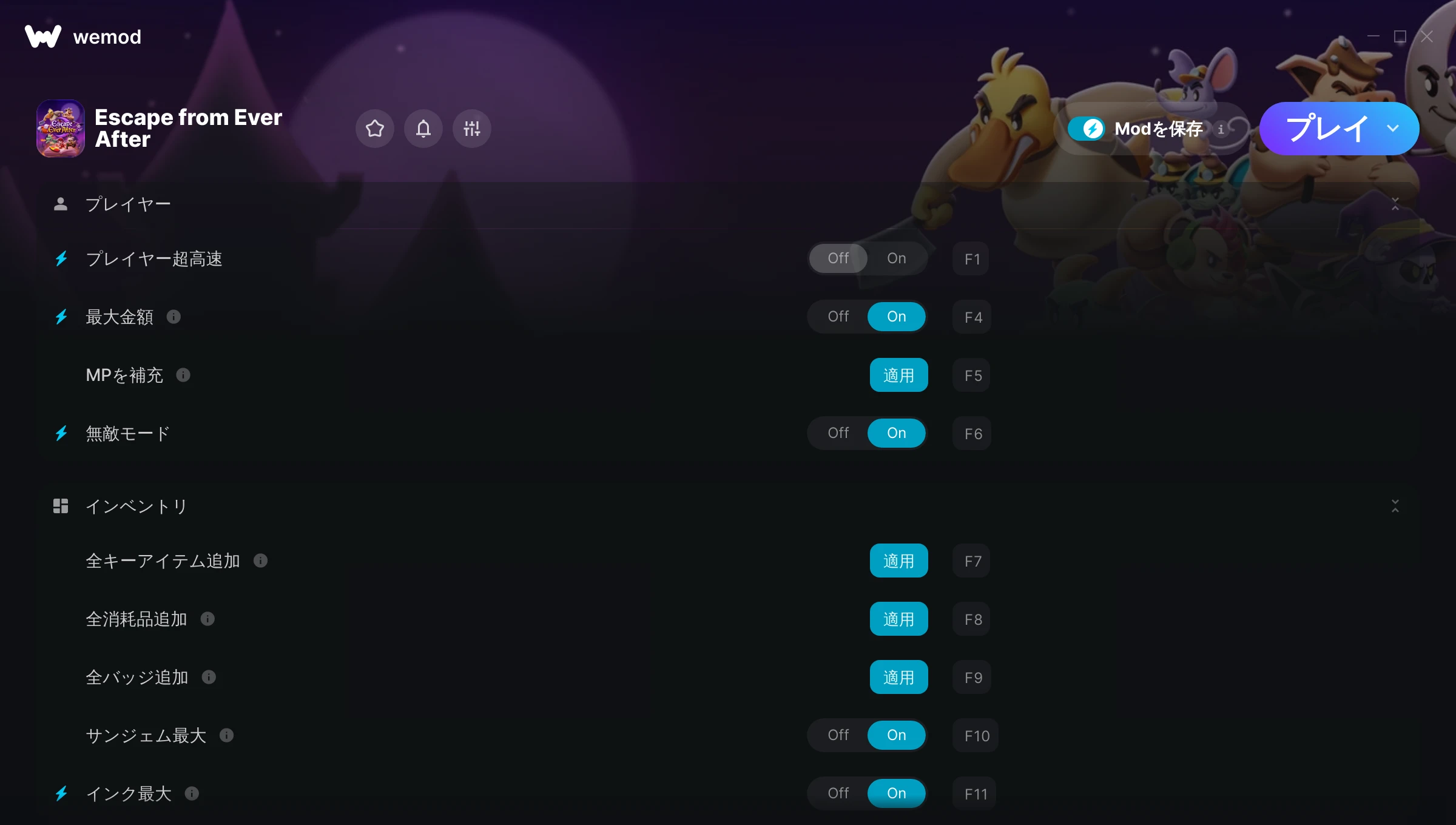 Escape from Ever Afterでチートを使うにはどうすればよいですか?WeModはすべてのゲームをPC上に安全に表現します。リストからゲームを開き、プレイを開始するだけです。ゲームが読み込まれ、ユーザーがゲーム内に入ると、さまざまなチートを有効化できるようになります!これは私のゲームのバージョンで動作しますか?WeModは高度な技術を使用して、実行中のゲームのバージョンを検知し、対応しているかどうかをユーザーに通知します。通知がなくても試してみることができますが、その場合はアップデートをリクエストしてみてください!