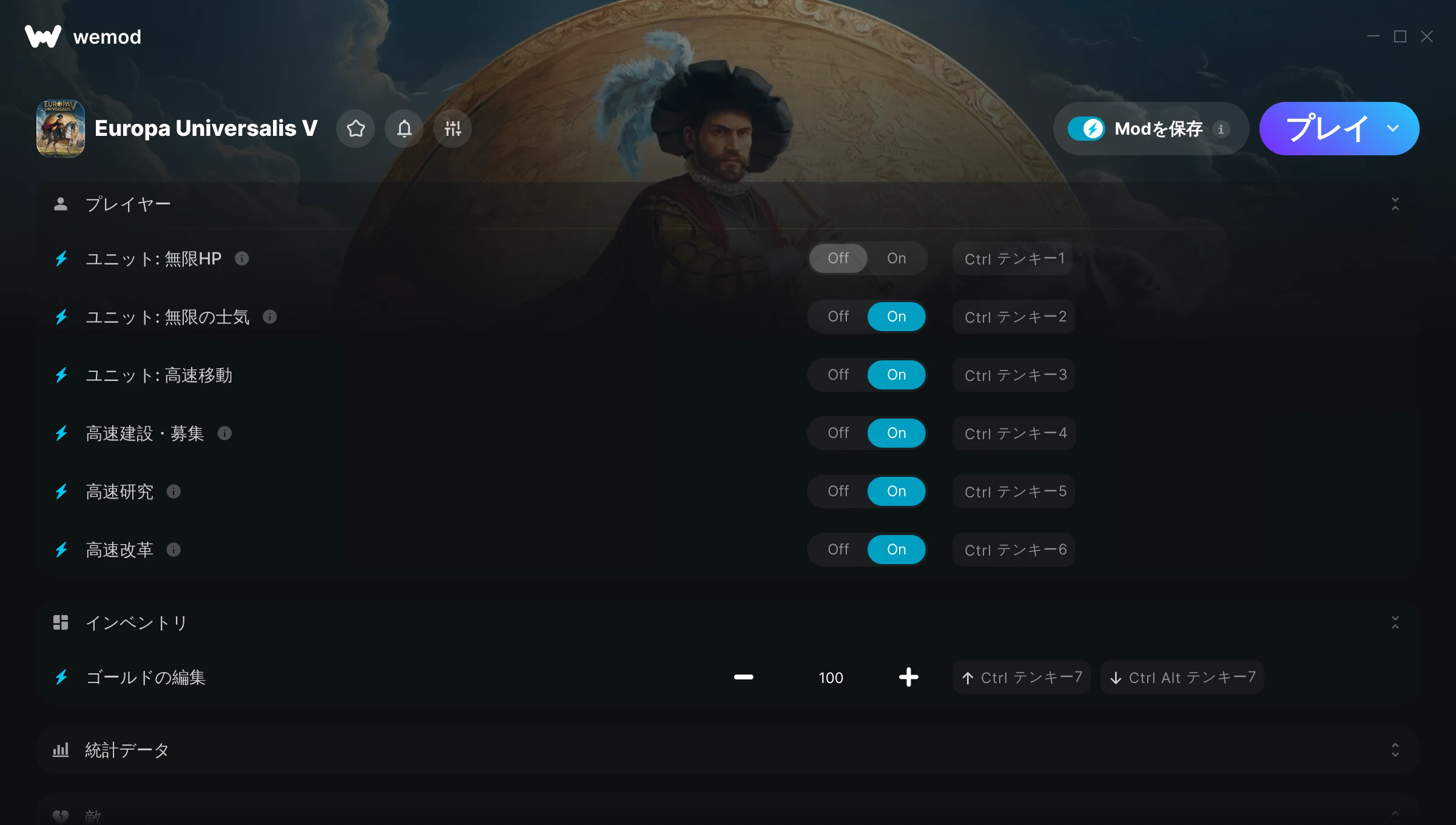 85MB Windows ...またはPCでWeModにアクセスしてアプリをダウンロード ユニット: 無限HPを入手, ユニット: 無限の士気 & その他31件のMod for Europa Universalis V with WeMod