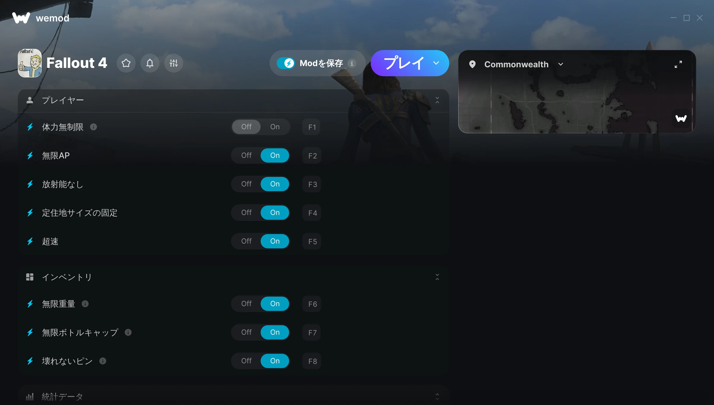 have always enjoyed wemod and the trainers on here work wonderfully especially this one without it idk that i would play the game still since i have beaten so many times already but between mods and this trainer for fallout 4 it works out great
