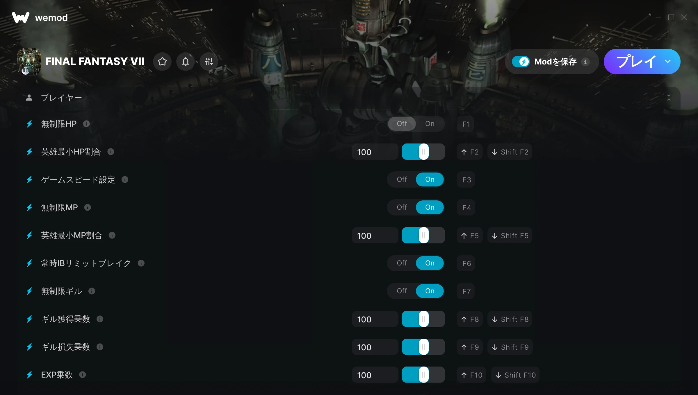 FINAL FANTASY VIIでチートを使うにはどうすればよいですか?WeModはすべてのゲームをPC上に安全に表現します。リストからゲームを開き、プレイを開始するだけです。ゲームが読み込まれ、ユーザーがゲーム内に入ると、さまざまなチートを有効化できるようになります!これは私のゲームのバージョンで動作しますか?WeModは高度な技術を使用して、実行中のゲームのバージョンを検知し、対応しているかどうかをユーザーに通知します。通知がなくても試してみることができますが、その場合はアップデートをリクエストしてみてください!