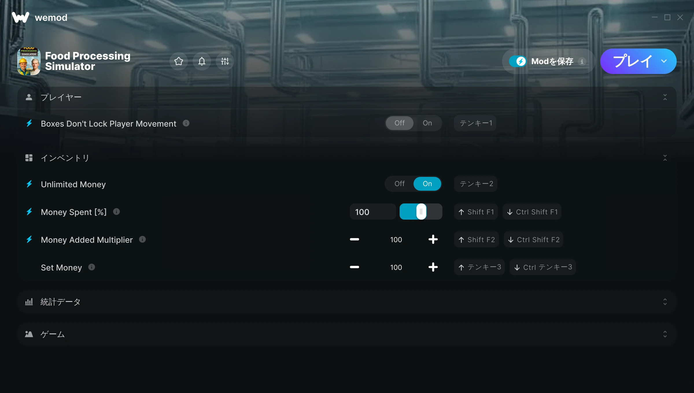 85MB Windows ...またはPCでWeModにアクセスしてアプリをダウンロード ボックスはプレイヤーの移動をロックしないを入手, 資金無制限 & その他9件のMod for Food Processing Simulator with WeMod