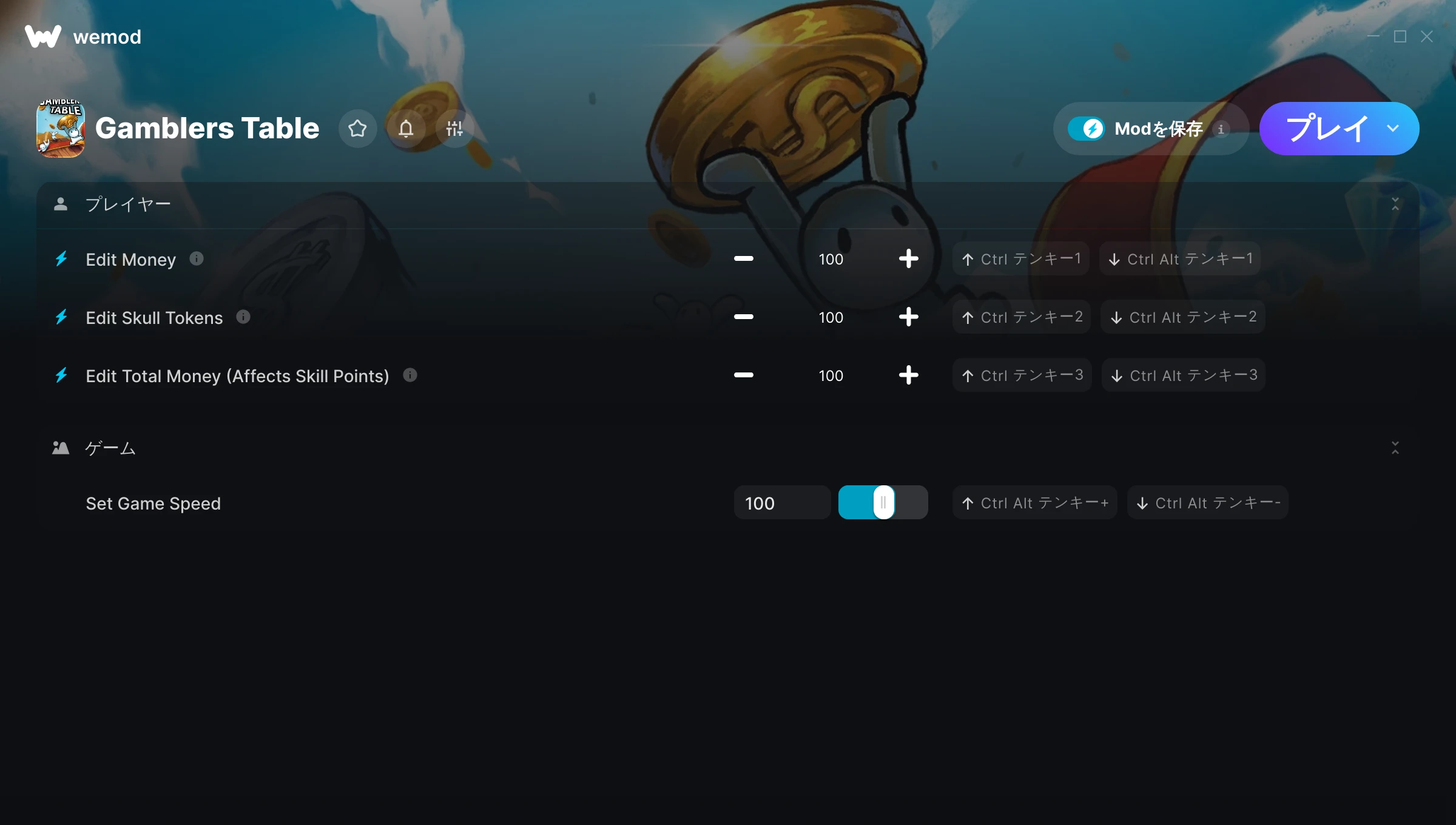 85MB Windows ...またはPCでWeModにアクセスしてアプリをダウンロード 資金設定を入手, スカルトークンの編集 & その他2件のMod for Gamblers Table with WeMod