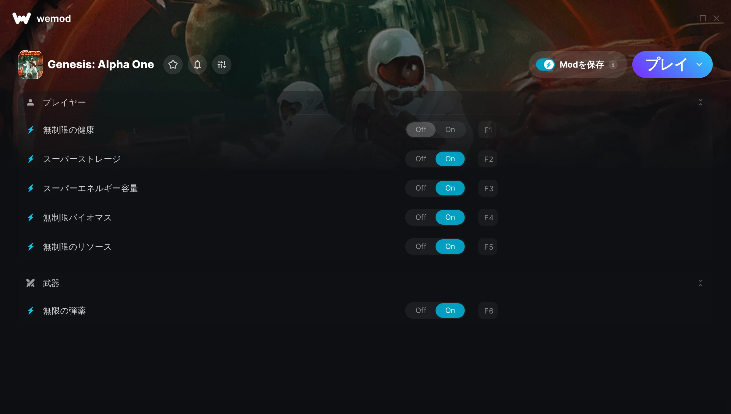 85MB Windows ...またはPCでWeModにアクセスしてアプリをダウンロード 無制限の健康を入手, スーパーストレージ & その他4件のMod for Genesis: Alpha One with WeMod