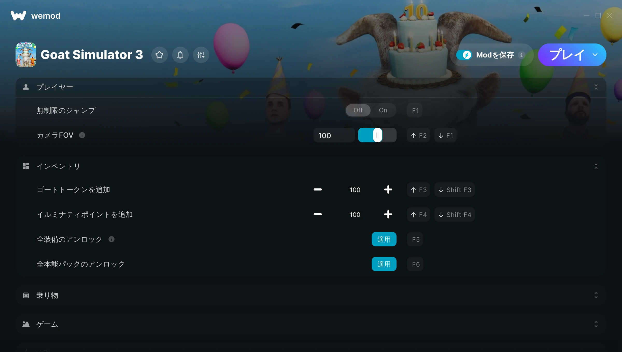 Hey developer, I have loved every thing and every second of playing Goat Simulator 3 with my friends, and then I was able to download this and have infinite coins and do all sorts of stuff, it made the game so much more fun and allowed for much more options of things to do and explore. I will be using Wemod on several of my other games because I enjoy it so much, from the bottom of my heart, thank you so much for this application.