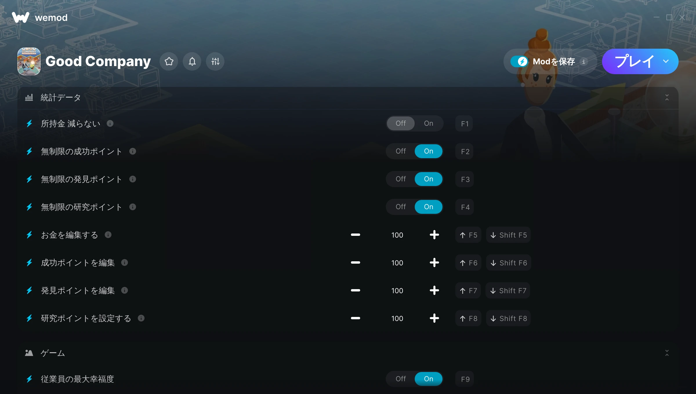 I became a company dictator that made everybody worked until they dropped. I can't thank Wemod and it's modders enough.