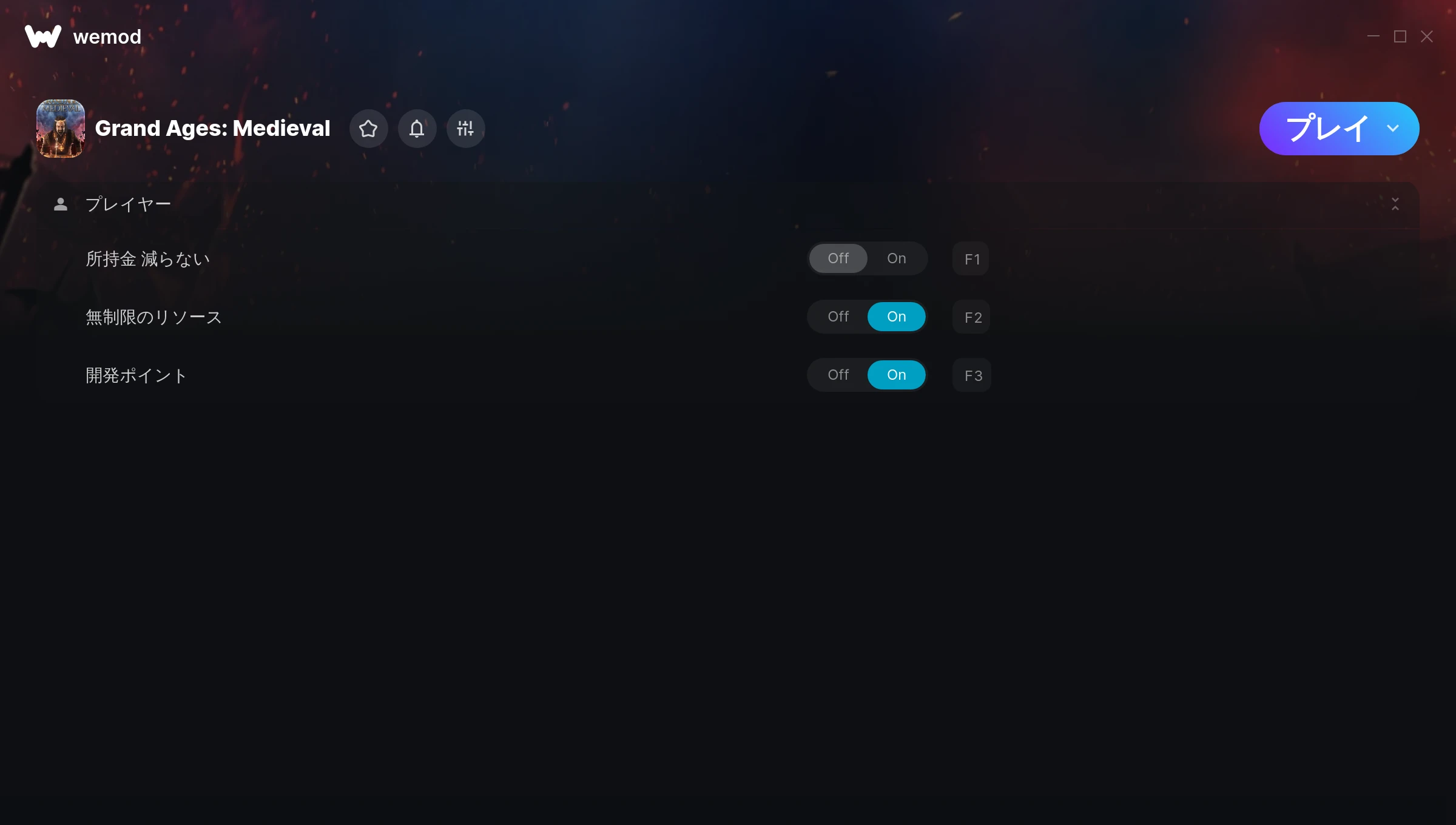 Grand Ages: Medievalでチートを使うにはどうすればよいですか?WeModはすべてのゲームをPC上に安全に表現します。リストからゲームを開き、プレイを開始するだけです。ゲームが読み込まれ、ユーザーがゲーム内に入ると、さまざまなチートを有効化できるようになります!これは私のゲームのバージョンで動作しますか?WeModは高度な技術を使用して、実行中のゲームのバージョンを検知し、対応しているかどうかをユーザーに通知します。通知がなくても試してみることができますが、その場合はアップデートをリクエストしてみてください!