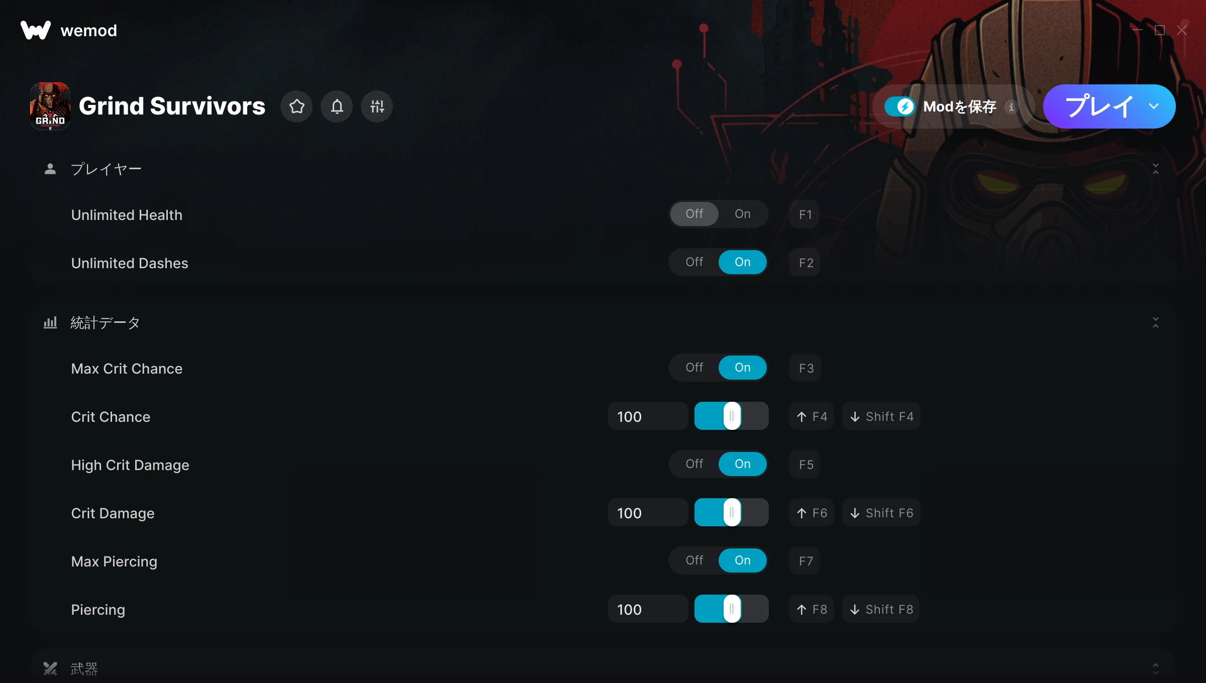 85MB Windows ...またはPCでWeModにアクセスしてアプリをダウンロード Unlimited Healthを入手, Unlimited Dashes & その他13件のMod for Grind Survivors with WeMod