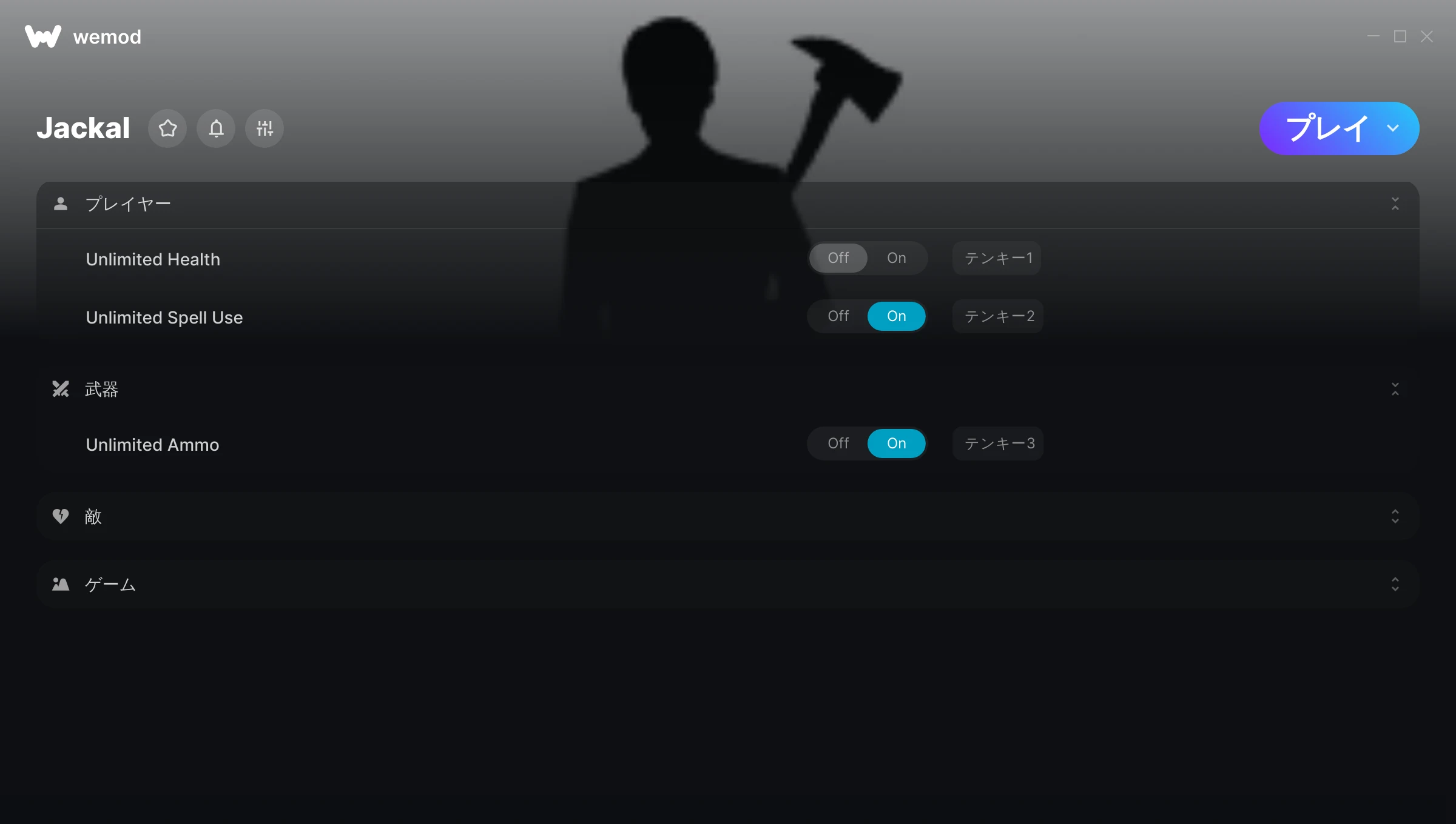 85MB Windows ...またはPCでWeModにアクセスしてアプリをダウンロード 体力無制限を入手, 無制限呪文使用 & その他3件のMod for Jackal with WeMod