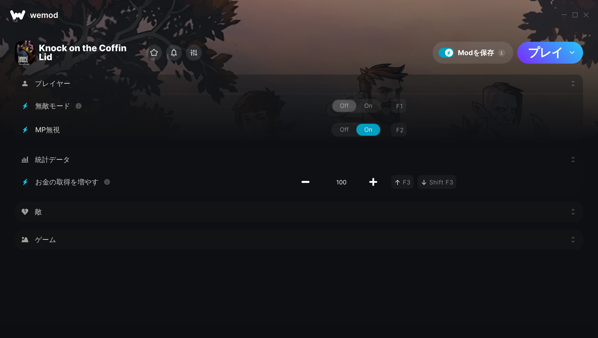 Knock on the Coffin Lidでチートを使うにはどうすればよいですか?WeModはすべてのゲームをPC上に安全に表現します。リストからゲームを開き、プレイを開始するだけです。ゲームが読み込まれ、ユーザーがゲーム内に入ると、さまざまなチートを有効化できるようになります!これは私のゲームのバージョンで動作しますか?WeModは高度な技術を使用して、実行中のゲームのバージョンを検知し、対応しているかどうかをユーザーに通知します。通知がなくても試してみることができますが、その場合はアップデートをリクエストしてみてください!