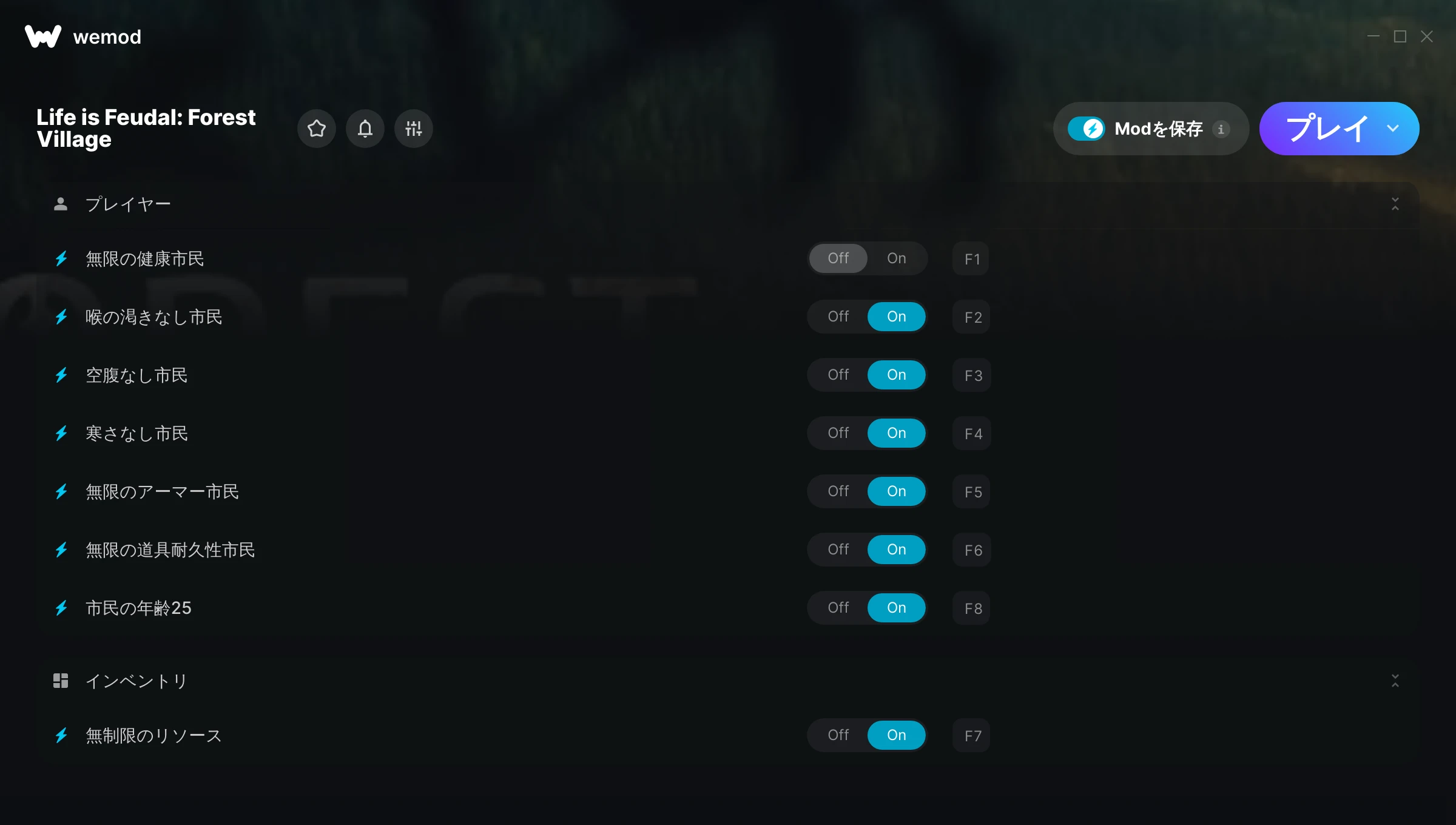Life is Feudal: Forest Villageでチートを使うにはどうすればよいですか?WeModはすべてのゲームをPC上に安全に表現します。リストからゲームを開き、プレイを開始するだけです。ゲームが読み込まれ、ユーザーがゲーム内に入ると、さまざまなチートを有効化できるようになります!これは私のゲームのバージョンで動作しますか?WeModは高度な技術を使用して、実行中のゲームのバージョンを検知し、対応しているかどうかをユーザーに通知します。通知がなくても試してみることができますが、その場合はアップデートをリクエストしてみてください!