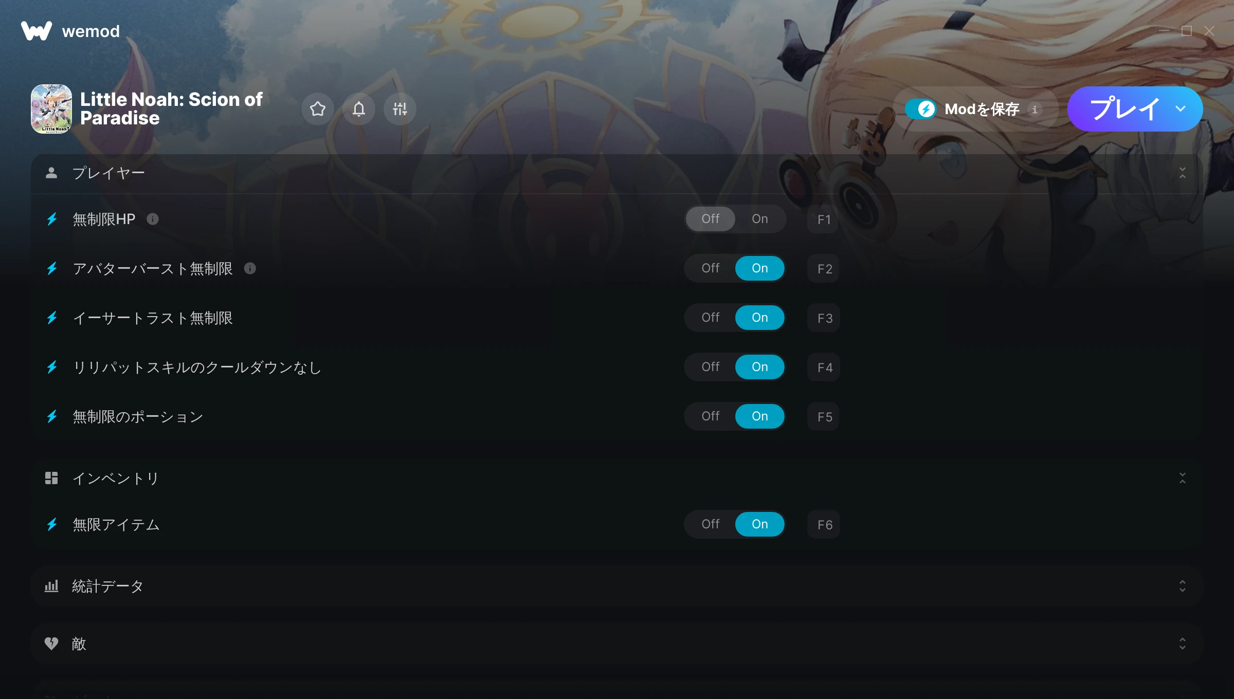 Little Noah: Scion of Paradiseでチートを使うにはどうすればよいですか?WeModはすべてのゲームをPC上に安全に表現します。リストからゲームを開き、プレイを開始するだけです。ゲームが読み込まれ、ユーザーがゲーム内に入ると、さまざまなチートを有効化できるようになります!これは私のゲームのバージョンで動作しますか?WeModは高度な技術を使用して、実行中のゲームのバージョンを検知し、対応しているかどうかをユーザーに通知します。通知がなくても試してみることができますが、その場合はアップデートをリクエストしてみてください!