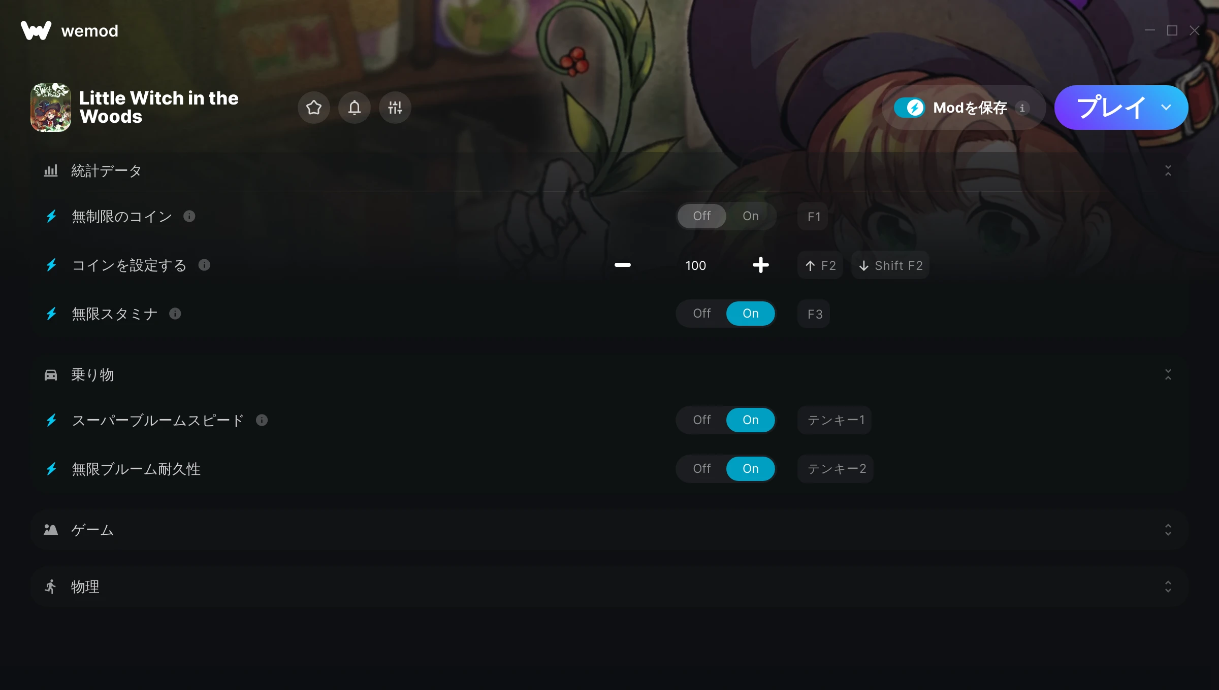 Little Witch in the Woodsでチートを使うにはどうすればよいですか?WeModはすべてのゲームをPC上に安全に表現します。リストからゲームを開き、プレイを開始するだけです。ゲームが読み込まれ、ユーザーがゲーム内に入ると、さまざまなチートを有効化できるようになります!これは私のゲームのバージョンで動作しますか?WeModは高度な技術を使用して、実行中のゲームのバージョンを検知し、対応しているかどうかをユーザーに通知します。通知がなくても試してみることができますが、その場合はアップデートをリクエストしてみてください!
