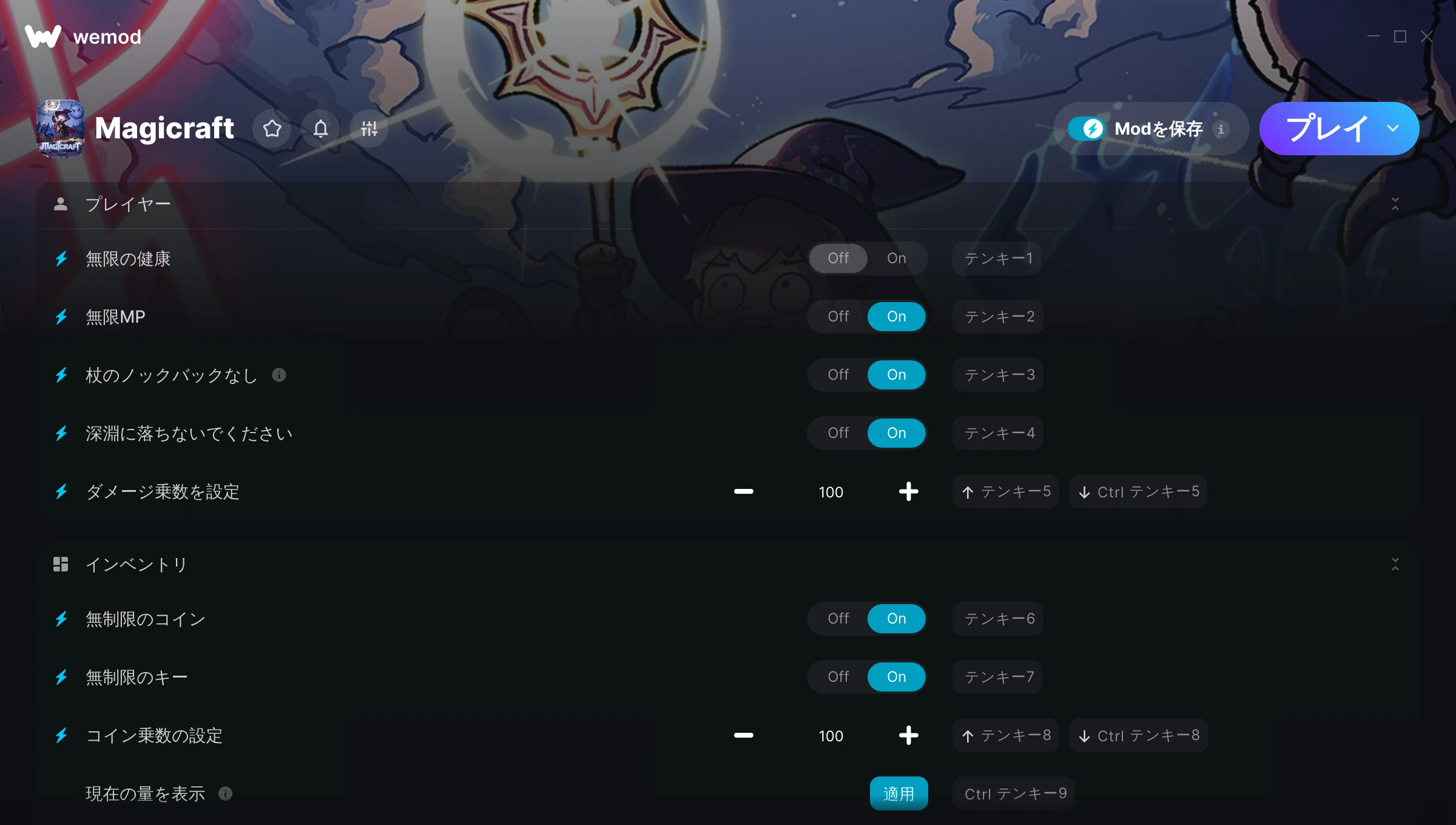 85MB Windows ...またはPCでWeModにアクセスしてアプリをダウンロード 無限の健康を入手, 無限MP & その他17件のMod for Magicraft with WeMod