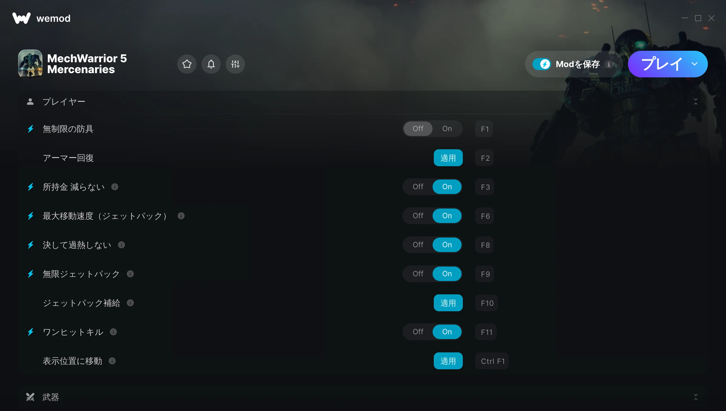 This trainer has made mechwarrior 5 really fun to play cause I've already beaten it on console so using prevented me from having to do everything all over again so a big thanks to you!!!