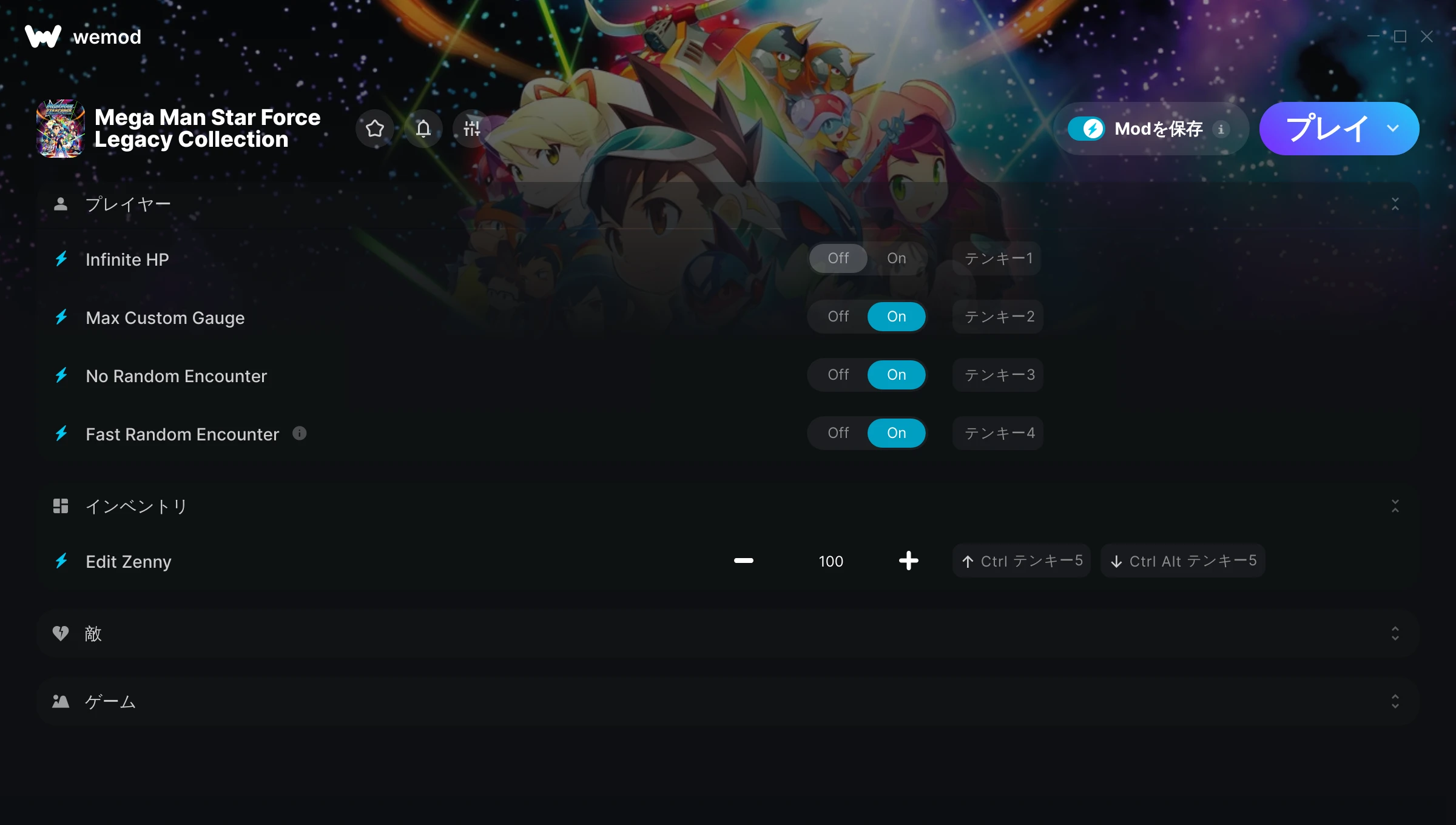 85MB Windows ...またはPCでWeModにアクセスしてアプリをダウンロード Infinite HPを入手, Max Custom Gauge & その他7件のMod for Mega Man Star Force Legacy Collection with WeMod