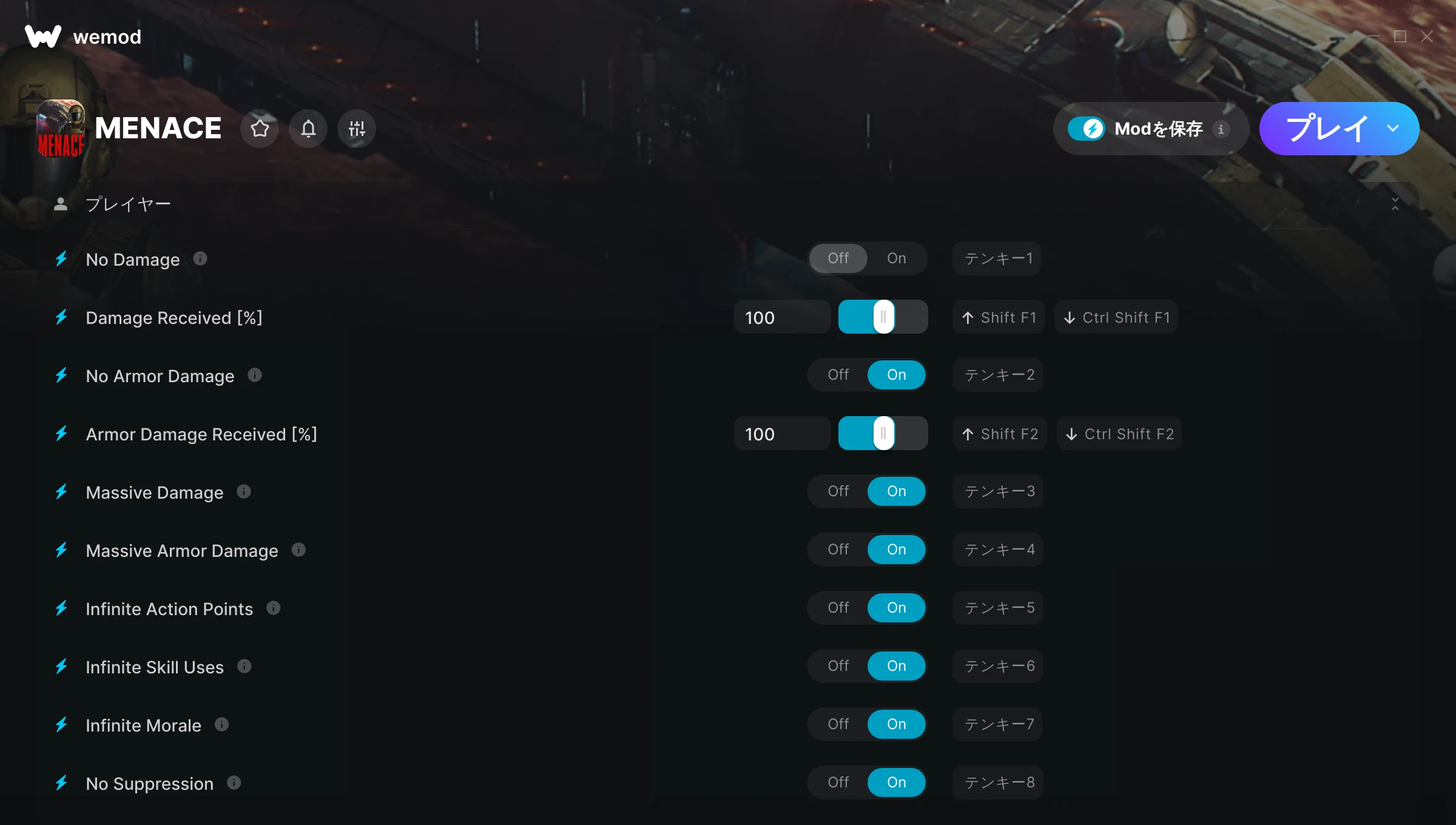 85MB Windows ...またはPCでWeModにアクセスしてアプリをダウンロード ダメージなしを入手, 受けるダメージ [%] & その他20件のMod for MENACE with WeMod