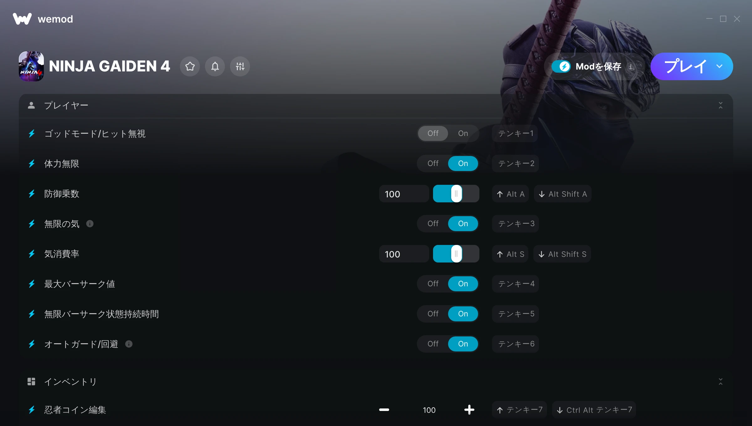 85MB Windows ...またはPCでWeModにアクセスしてアプリをダウンロード ゴッドモード/ヒット無視を入手, 体力無限 & その他16件のMod for NINJA GAIDEN 4 with WeMod