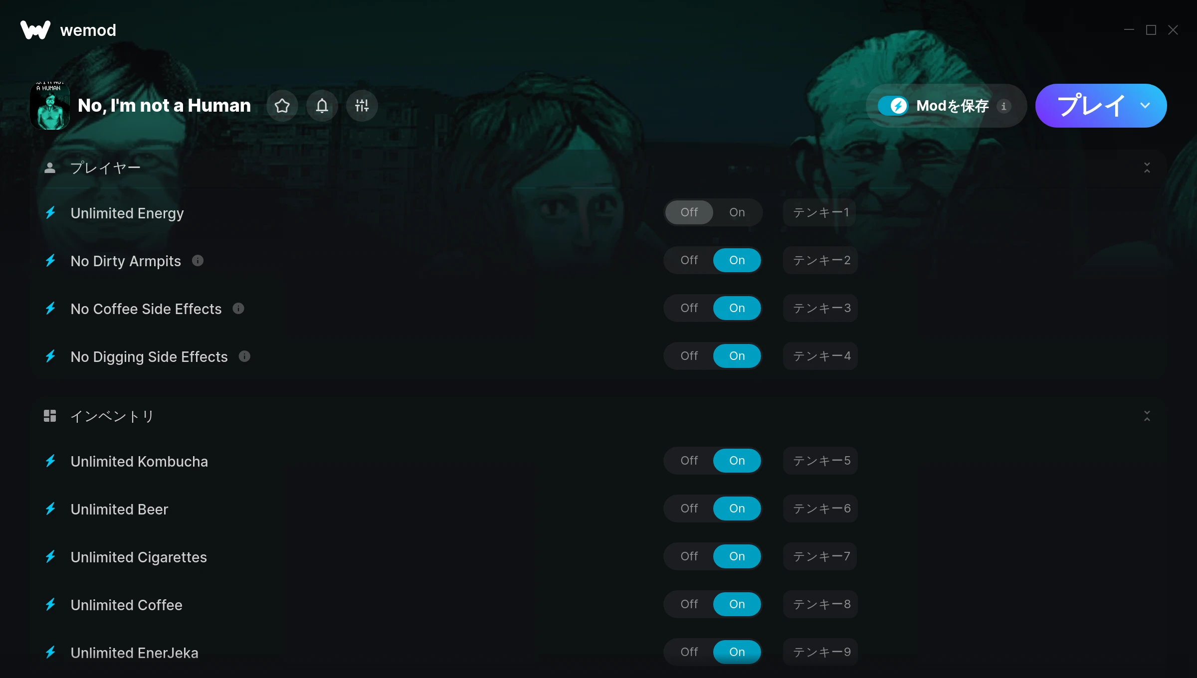 85MB Windows ...またはPCでWeModにアクセスしてアプリをダウンロード Unlimited Energyを入手, No Dirty Armpits & その他30件のMod for No, I'm not a Human with WeMod
