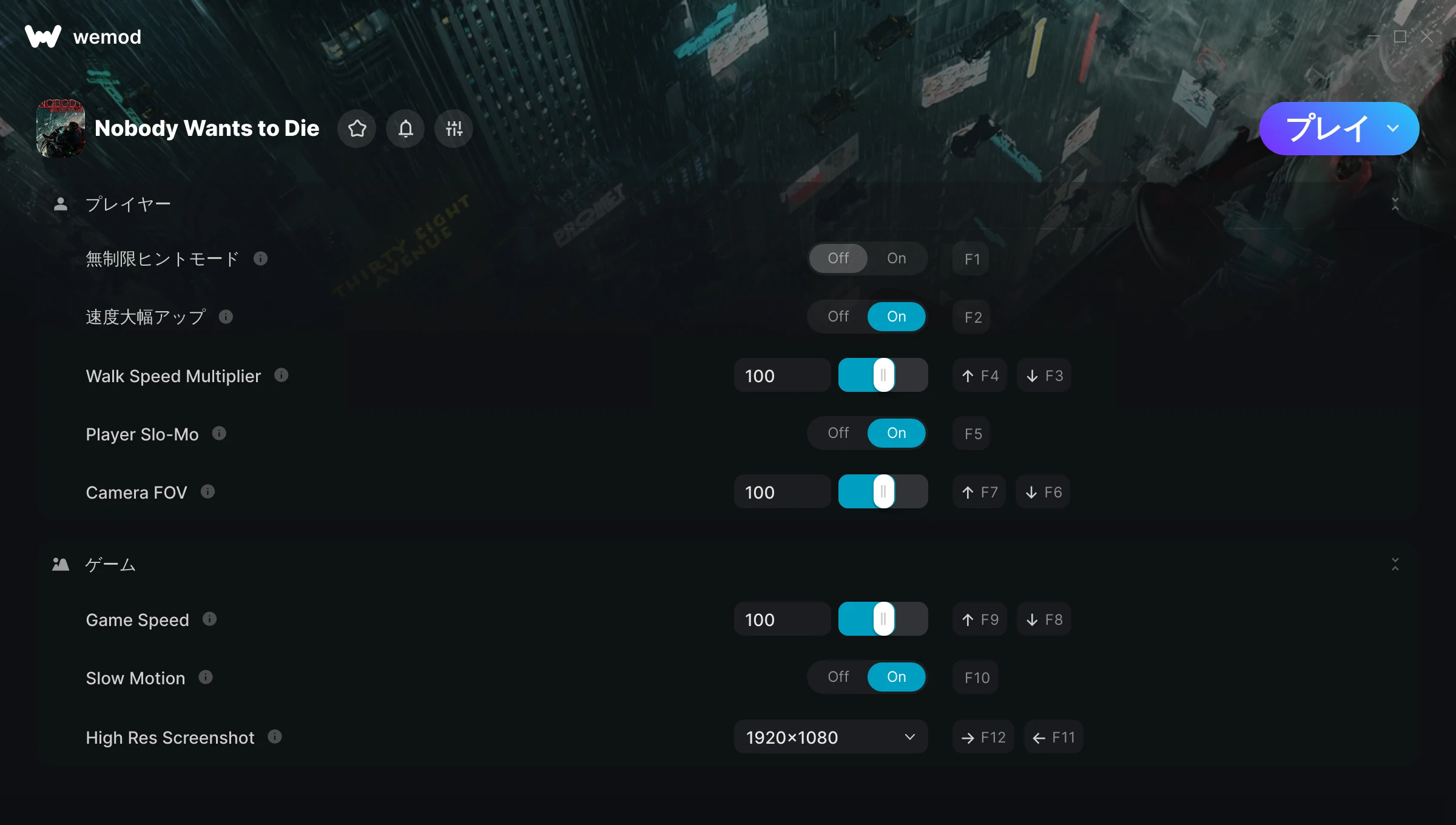 Nobody Wants to Dieでチートを使うにはどうすればよいですか?WeModはすべてのゲームをPC上に安全に表現します。リストからゲームを開き、プレイを開始するだけです。ゲームが読み込まれ、ユーザーがゲーム内に入ると、さまざまなチートを有効化できるようになります!これは私のゲームのバージョンで動作しますか?WeModは高度な技術を使用して、実行中のゲームのバージョンを検知し、対応しているかどうかをユーザーに通知します。通知がなくても試してみることができますが、その場合はアップデートをリクエストしてみてください!