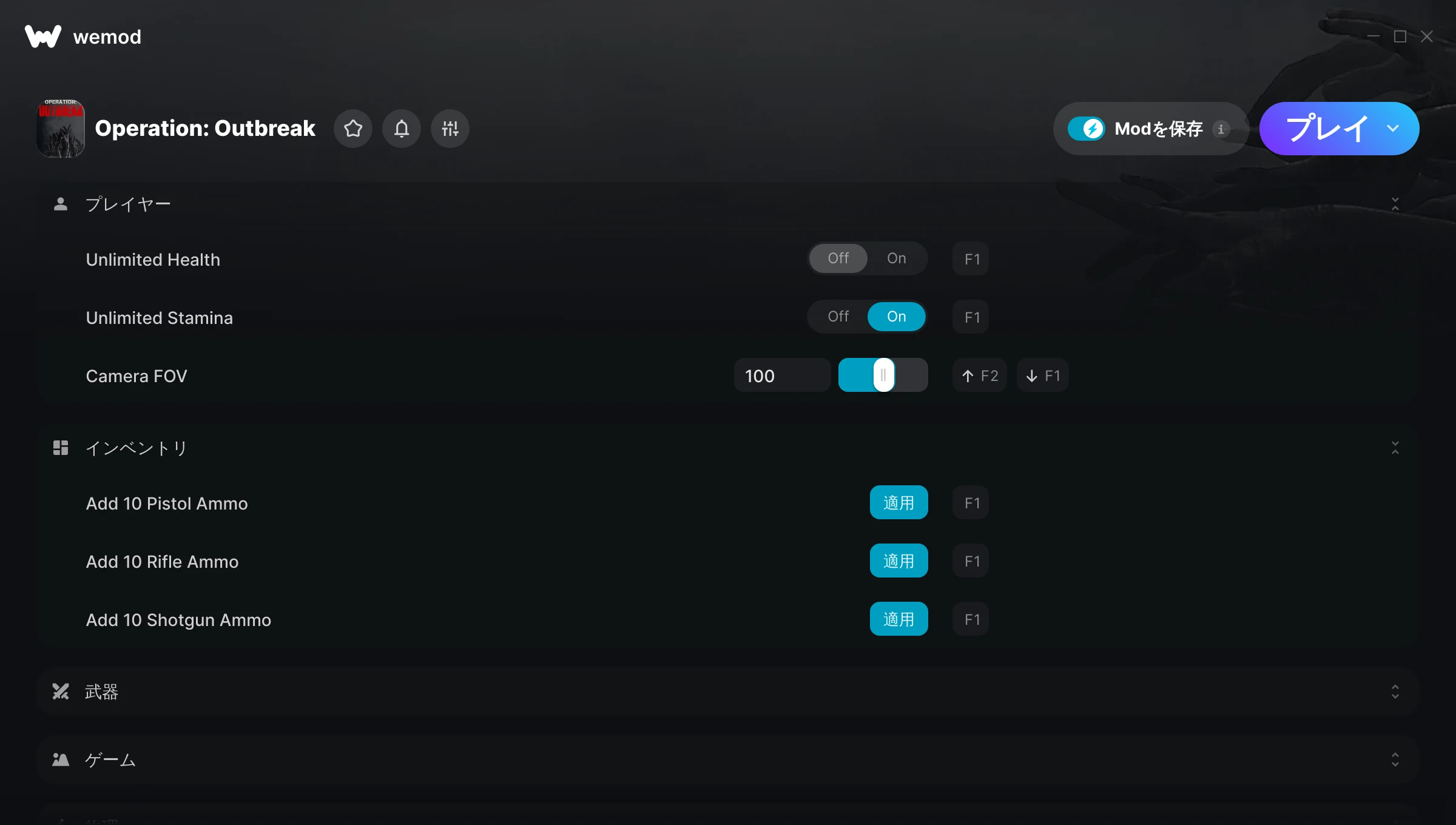 85MB Windows ...またはPCでWeModにアクセスしてアプリをダウンロード 体力無制限を入手, スタミナ無制限 & その他21件のMod for Operation: Outbreak with WeMod