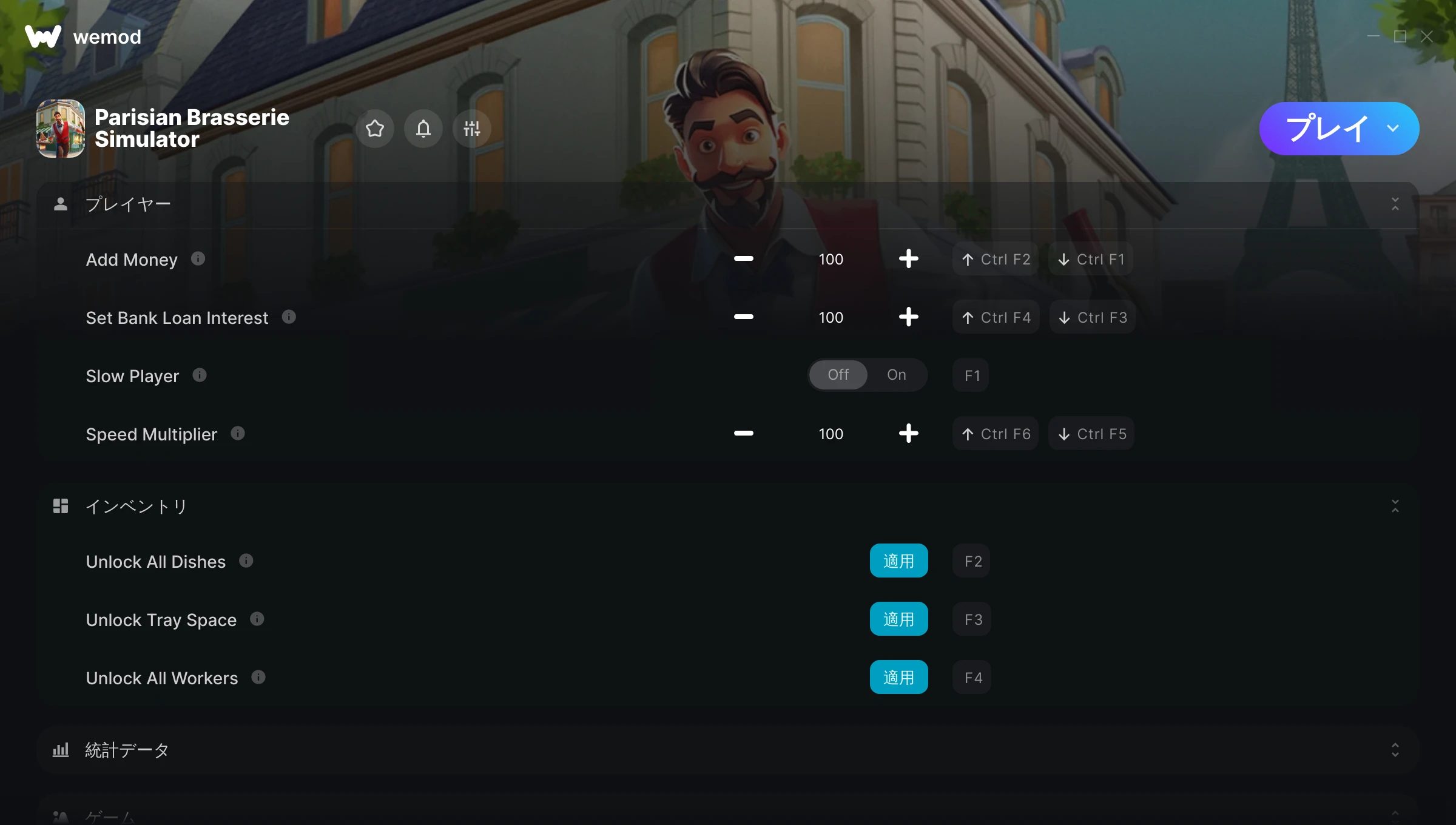 85MB Windows ...またはPCでWeModにアクセスしてアプリをダウンロード お金を追加を入手, 銀行ローン金利設定 & その他9件のMod for Parisian Brasserie Simulator with WeMod