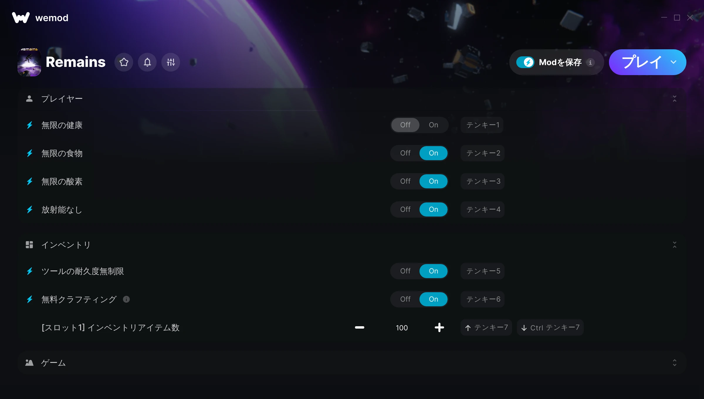 オン オフ 無限の体力 無限のスタミナ Modを切り替える