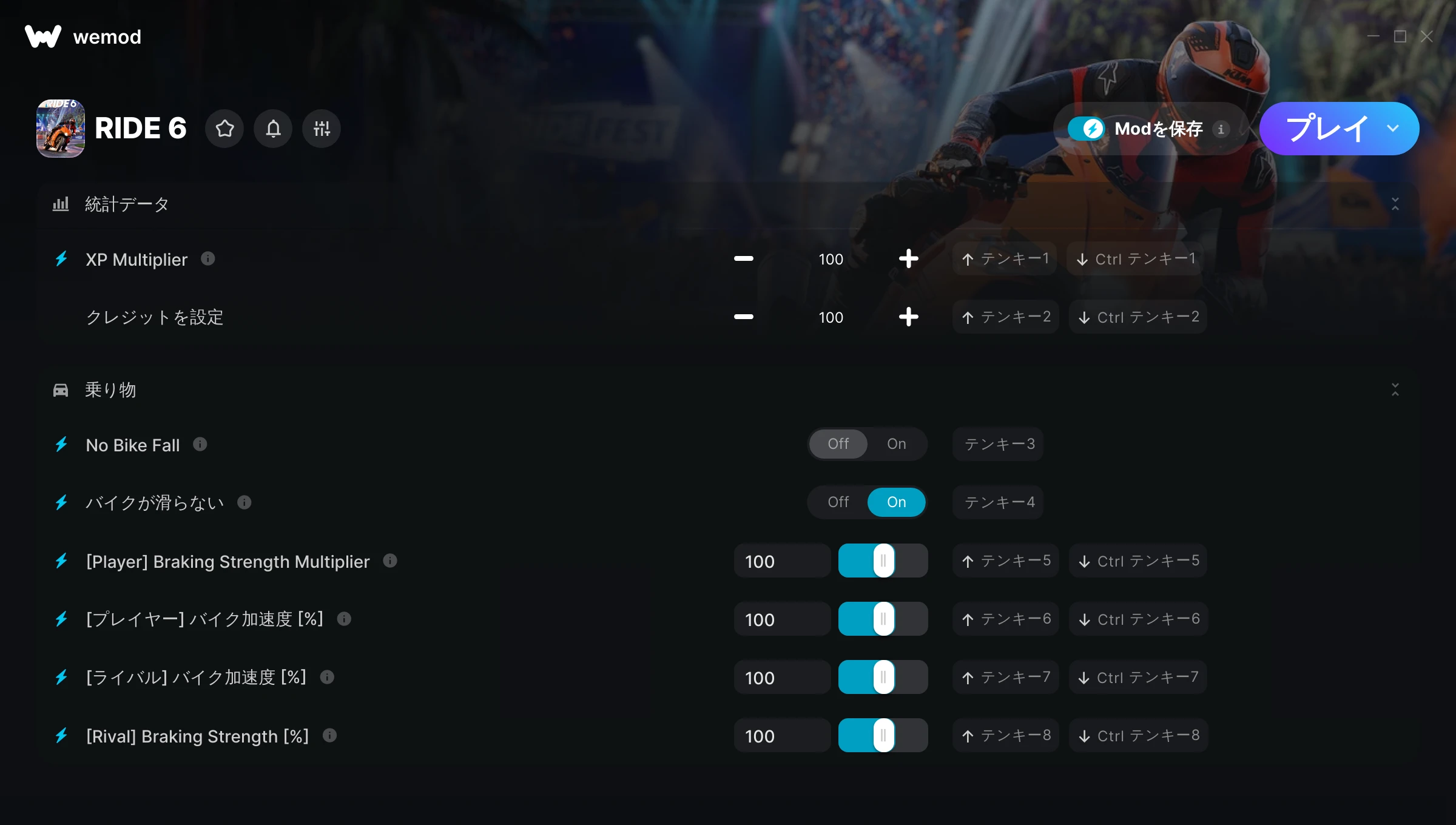 85MB Windows ...またはPCでWeModにアクセスしてアプリをダウンロード XP乗数を入手, クレジットを設定 & その他6件のMod for RIDE 6 with WeMod