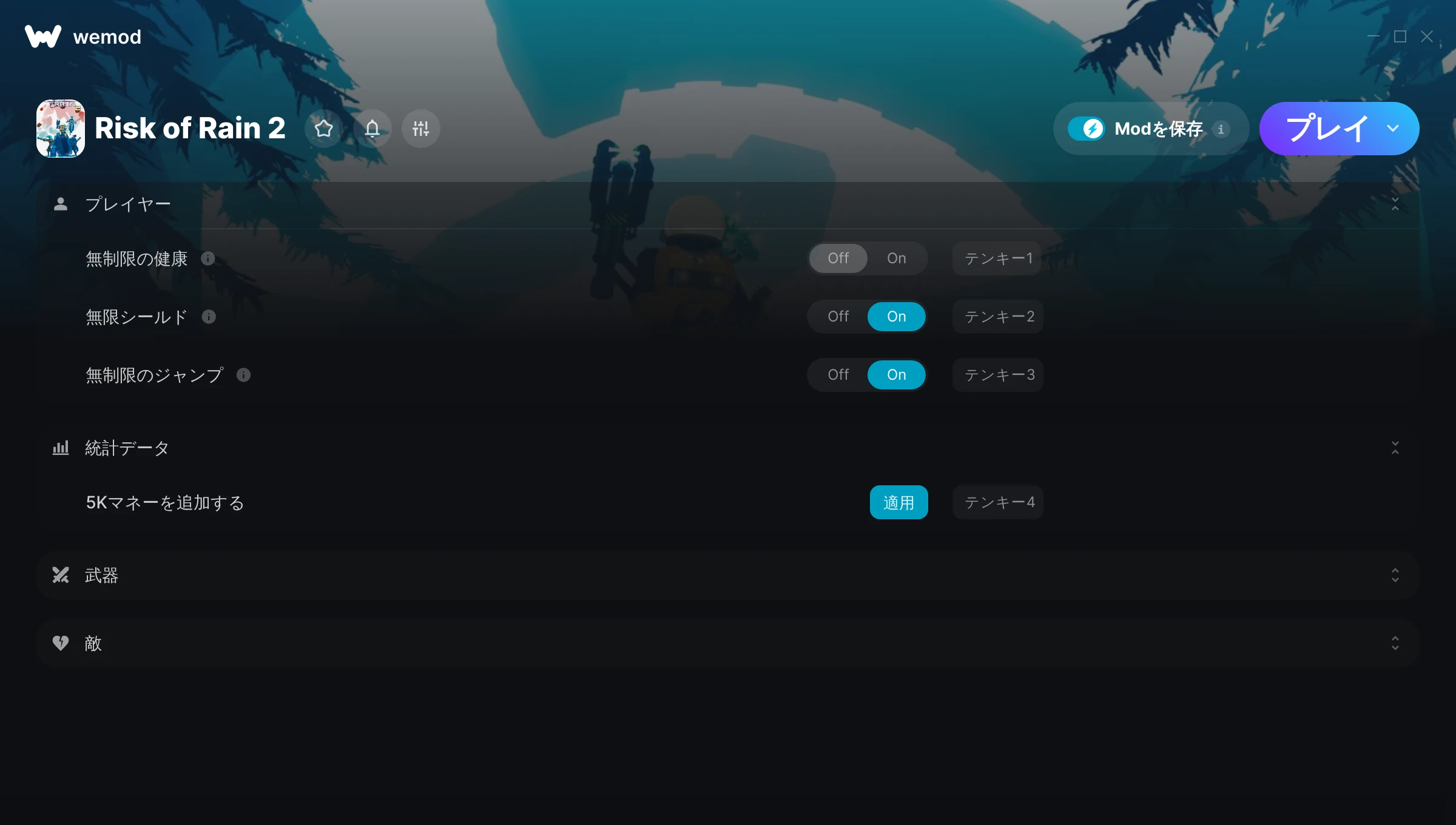 thank you WeMod & devs for allowing us the gamer to play how we want. had risk of rain 2 on the ps4 with a couple thousand hours into it after switching to PC this helped to unlock characters and items.