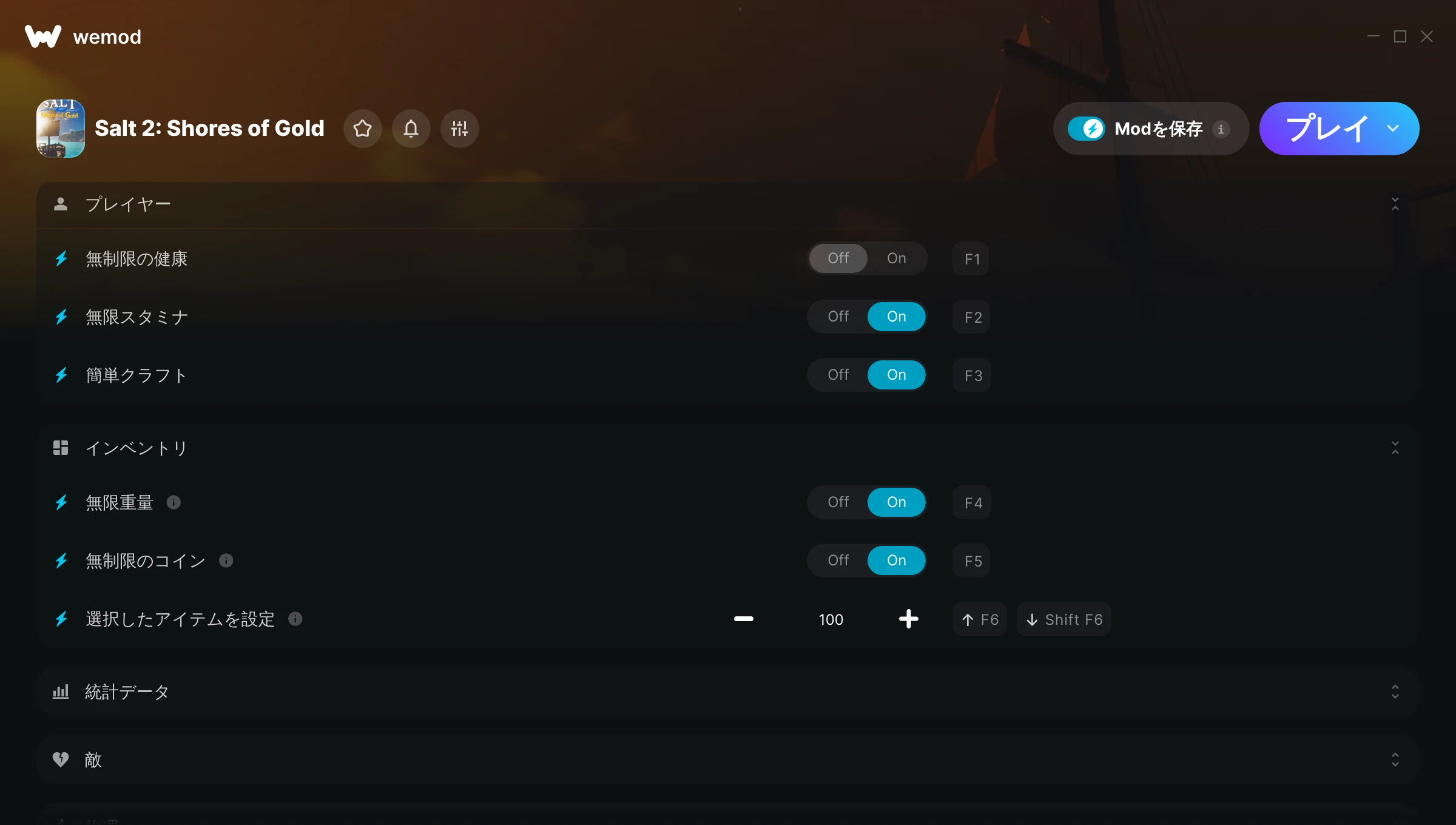 85MB Windows ...またはPCでWeModにアクセスしてアプリをダウンロード 無制限の健康を入手, 無限スタミナ & その他8件のMod for Salt 2: Shores of Gold with WeMod